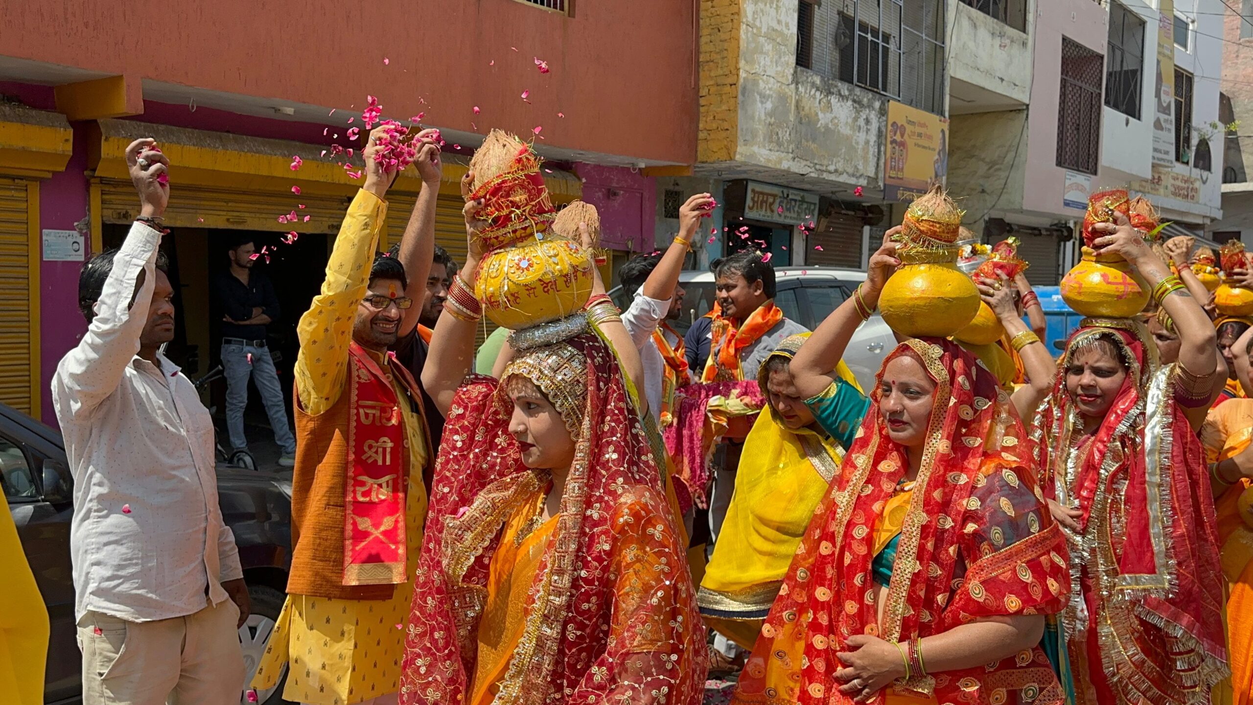 बुलंदशहर। ।भारत पुष्प। हिन्दू नववर्ष विक्रम संवत 2081 एवं चैत्र नवरात्रि शुभारंभ के अवसर पर श्री महाकात्यायनी कमेटी के तत्वावधान में 2 दिवसीय भव्य समारोह की श्रृंखला में प्रथम दिन नगर क्षेत्र में कलश यात्रा निकाली गई। राष्ट्र चेतना मिशन के कार्यकर्ताओं ने विभिन्न स्थानों पर पुष्पवर्षा कर कार्यक्रम में सम्मिलित मातृ शक्ति का अभिनंदन किया। सोमवार रात्रि को 21 हजार दिए जलाकर अदभुत और भव्य दीपोत्सव का आयोजन किया जाएगा। नगर के देवीपुरा क्षेत्र के आनन्द पुरी मोहल्ले से प्रारम्भ हुई कलश यात्रा शास्त्री पार्क, भगवान पुरा, बूरा बाजार चौराहा, डिप्टी गंज, सेठों वाली गली, काली मंदिर चौराहा, भवन देवी मंदिर एवं चार खंभा रोड होते हुए वापस आनंदपुरी के शिव मंदिर में संपन्न हुई। कार्यक्रम में मुख्य अतिथि के रूप में सम्मिलित राष्ट्र चेतना मिशन के अध्यक्ष हेमन्त सिंह एवं संगठन के कार्यकर्ताओं ने बूरा बाजार चौराहा एवं वाल्मीकि चौक देवीपुरा में स्वागत शिविर लगाकर कलश यात्रा में सैकड़ों की संख्या में सम्मिलित मातृ शक्ति का पुष्पवर्षा एवं जयघोष कर अभिनंदन किया। यात्रा के पश्चात आयोजित समारोह में संबोधन के दौरान मुख्य अतिथि राष्ट्र चेतना मिशन के अध्यक्ष हेमन्त सिंह ने सभी को हिन्दू नववर्ष विक्रम सम्वत 2081 एवं चैत्र नवरात्रि के शुभारंभ पर बधाई देते हुए कहा कि श्री महाकात्यायनी कमेटी के युवाओं द्वारा अपनी सनातन संस्कृति एवं गौरवशाली परंपराओं को नववर्ष उत्सव के रूप में मनाने की पहल अत्यंत सराहनीय, प्रेरणादायक और अनुकरणीय है। कार्यक्रम की श्रृंखला में सोमवार दिन में कलश यात्रा संपन्न होने के उपरांत रात्रि को 21 हजार दिए जलाकर भव्य दीपोत्सव, मंगलवार दोपहर 12 कुंडीय श्री गायत्री महायज्ञ तथा शाम को विशाल भजन संध्या का आयोजन किया जाएगा। कार्यक्रम व्यवस्थाओं में आयोजक श्री महाकात्यायनी कमेटी आनंदपुरी के संचालक यश गरिमामयी और प्रखर हिंदवी के साथ ही मृदुल सक्सेना, विनायक अग्रवाल, आयुष वर्मा, अमन बंसल, दीपक चौधरी, केशव शर्मा, पीयूष कुमार, अनुराग ठाकुर, कार्तिकेय पंडित, प्रशान्त वर्मा, राम अवतार लोधी, देव शर्मा, अक्षित कुमार, हिमांशु गोस्वामी, हरीश प्रजापति, महेश लोधी, हेमन्त गुप्ता, अरुण राजपूत आदि सम्मिलित रहे।