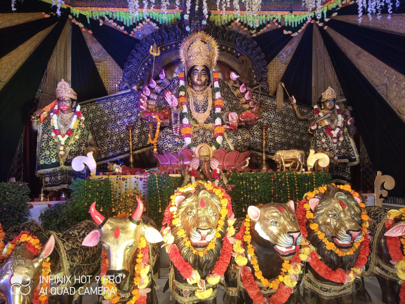 खुर्जा (भारत पुष्प) नगर के प्रसिद्ध श्री नवदुर्गा शक्ति मंदिर पर चल रहे श्री चैत्र मास नवरात्र महोत्सव के साथ में दिन माता रानी को काले रंग की पोशाक धारण कर कर उन्हें गुड का भोग लगाया गया मंदिर पुजारी सुरेश ओझा ने बताया की माता रानी की पूजा अर्चना मां कालरात्रि के रूप में की गई तथा उनका वाहन गधा है उन्होंने बताया कि सभी देवी देवता मिलकर भगवान शंकर के पास गए और रक्षा की प्रार्थना की. तब महादेव ने मां पार्वती से असुरों का अंत कर अपने भक्तों की रक्षा करने को कहा. इसके बाद माता पार्वती ने दुर्गा का रूप धारण किया और शुंभ-निशुंभ का वध कर दिया. माता के सामने असली चुनौती राक्षस रक्तबीज ने पेश की मंदिर के पूर्व प्रधान सतीश चंद्र शर्मा ने बताया कि मंदिर प्रांगण में हनुमान जी छोटे रूप में भी मौजूद हैं जहां प्रत्येक मंगलवार को हनुमान जी पर चोला चढ़ाया जाता है इसके अलावा मंदिर में संतोषी माता का विग्रह भी स्थापित है