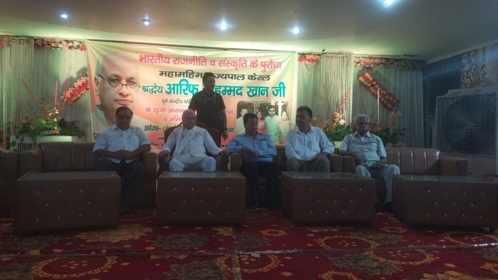 खुर्जा। ।भारत पुष्प। भारतीय राजनीति को नई दिशा दशा और स्वच्छता प्रदान करने वाले भारतीय संस्कृति के पुरोधा पूर्व केंद्रीय मंत्री भारत सरकार राज्यपाल केरल आरिफ मोहम्मद खान साहब नगर के प्रतिष्ठित आनंद रोडवेज कारोबारी महेश चौधरी के निवास पर पहुंचे।