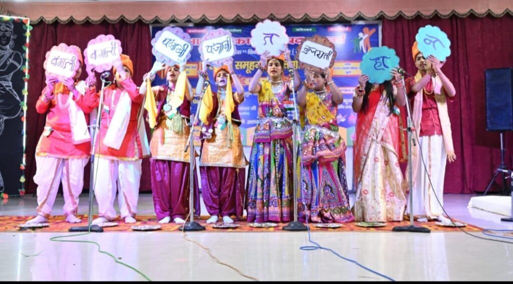 खुर्जा। ।भारत पुष्प। भारत विकास परिषद खुर्जा द्वारा समूह गान प्रतियोगिता का आयोजन किया गया। कार्यक्रम का शुभारंभ दीप प्रज्जवलन से हुआ। कार्यक्रम में 6 विद्यालयों की टीम जिसमे सरस्वती विद्या मंदिर राममूर्ति हर स्वरूप बालिका विद्या मंदिर आदर्श शिशु मंदिर एनआर पब्लिक स्कूल भारत विकास परिषद कन्या उच्च माध्यमिक विद्यालय एवं महाराजा अग्रसेन पब्लिक स्कूल रहे। टीम ने हिंदी और संस्कृत में साथ-साथ मिनट के अंदर अपना गान प्रस्तुत किया गया बुलंदशहर के एवं डिबाई के निर्णायकों द्वारा निर्णय दिया क्या सभी टीमों एवं प्रतिभागियों को प्रमाण पत्र एवं स्मृति चिंह दिया गया महाराजा अग्रसेन पब्लिक स्कूल की टीम ने प्रथम एवं भारत विकास परिषद कन्या माध्यमिक विद्यालय की टीम ने द्वितीय स्थान प्राप्त किया। प्रांतीय अध्यक्ष श्री नरेंद्र शर्मा प्रांतीय महासचिव कविता बंसल मुख्य अतिथि मीनाक्षी सिंह विशिष्ट अतिथि कुसुम सिंह राजीव बंसल व नवीन कुमार क्षेत्रीय संयुक्त महासचिव ने पुरस्कार वितरण किया। कार्यक्रम के प्रारंभ में अध्यक्ष भारत विकास परिषद प्रेम प्रकाश अरोरा ने सभी अतिथियों का स्वागत किया सचिव पीयूष तायल मुकुट लाल गुप्ता और पवन गोयल कृष्ण अवतार बंसल के द्वारा प्रतियोगिता व्यवस्था को संपन्न कराया गया।