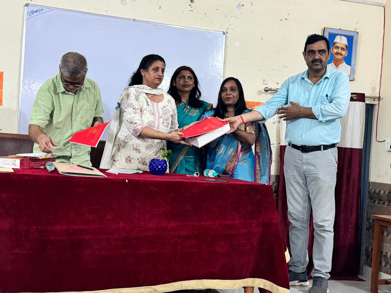 खुर्जा। ।भारत पुष्प। एकेपी डिग्री कॉलेज के हिंदी शोध परिषद् के तत्वावधान में पीएचडी मौखिकी परीक्षा आयोजित हुई जिसमें शोधार्थी मनोज कुमार तोमर द्वारा ‘इक्कीसवीं के हिंदी बाल साहित्य में मनौवैज्ञानिक दृष्टि से अध्ययन’ विषय पर शोधाकार्य पूर्ण किया । कार्यक्रम का शुभारंभ मुख्य अतिथि डा. बीआर अंबेडकर विश्वविद्यालय दिल्ली के हिंदी विभागाध्यक्ष प्रोफ़ेसर गोपाल प्रधान, प्राचार्या प्रो डिंपल विज व शोध परिषद की प्रभारी डॉ रेखा चौधरी द्वारा माँ सरस्वती के आमुख दीप प्रज्वलित कर किया गया । शोधार्थी मनोज ने अपना शोधसार प्रस्तुत किया उसके पश्चात प्रों प्रधान ने बाल मनोवैज्ञानिकता पर अपने विचार दिये तथा बताया कि विद्यार्थी कक्षा में अनेक प्रकार से अनुभव लेकर उपस्थित होते हैं उन्होंने बाल मनोविज्ञान पर और ज़्यादा काम करने की अपील की । महाविद्यालयकी प्राचार्या प्रो डिंपल विज ने कहा कि महाविद्यालय निरन्तर शोध के क्षेत्र में प्रयासरत हैं I इस अवसर पर समस्त शोधार्थी व महाविद्यालय परिवार उपस्थित रहा।