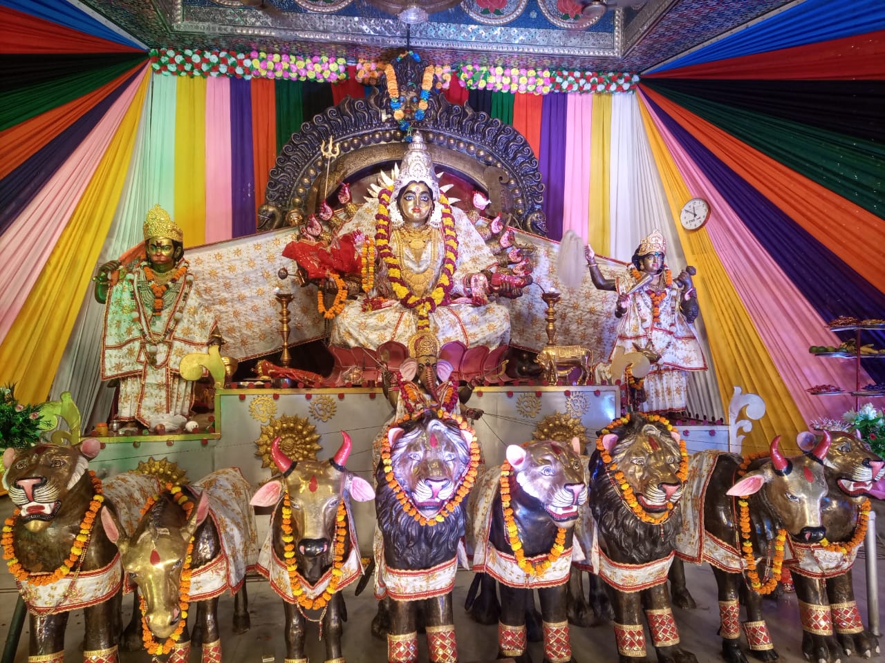 खुर्जा। ।भ्रारत पुष्प। नगर के प्रसिद्ध श्री नवदुर्गा शक्ति मंदिर पर श्री आशिवन मास नवरात्र महोत्सव गुरूवार की प्रातः बेला से हर्षोल्लास के साथ प्रारंभ हो गया। मंदिर के प्रधान संजय वर्मा ने बताया कि श्री नवदुर्गा शक्ति मंदिर से माता रानी की ज्योति लेने अनेक लोग मंदिर पर पहुंचते हैं। जिसके चलते बुद्धवार की शाम से जोत लेने वाले लोग मंदिर प्रांगण के आसपास जमा होने लगे। जो पूरी रात्रि मंदिर प्रांगण में ही मौजूद रहे तथा प्रातःकाल की बेला में मंदिर खुलते ही जोत लेने आये श्रद्धालुओं को मंदिर से मातारानी की ज्योत दी गई जिसे लेकर वह पूरे गाजे बाजे के साथ अपने स्थान के लिए रवाना हुए। वहीं मंदिर के आजीवन सचिव रोहित अग्रवाल ने बताया कि मंदिर पर आयोजित होने वाले श्री आश्विन मास नवरात्र महोत्सव की पूरी तैयारियां कमैटी द्वारा कर ली गई हैं। भक्तों को क्रमबद्ध तरीके से मातारानी के दर्शन कराये जायेंगे। उन्होनें मंदिर पर अपने वाले सभी श्रद्धालुओं से अपील की कि वह मंदिर पर बुर्जुग व बीमार लोगों को लेकर न पहुंचे तथा मंदिर कमैटी द्वारा पूरी सुरक्षा व्यवस्था की गई उसके बावजूद उन्होनें कहा कि आने वाले श्रद्धालु कीमती जेवर पहनकर मंदिर पर न पहुंचे। मंदिर पर प्रथम नवरात्रि के दौरान माता रानी को सफेद रंग की पोषाक धारण कराकर उनकी पूजा अर्चना माता शैलपुत्री के रूप में की गई। साथ ही माता रानी को गाय के घी का भोग अर्पित किया गया। माता रानी का वाहन बैल बताया गया। मंदिर के मुख्य पुजारी नन्द किशोर शर्मा ने बताया कि शैलपुत्री देवी दुर्गा के नौ रूप में पहले स्वरूप में जानी जाती हैं। ये ही नवदुर्गाओं में प्रथम दुर्गा हैं। पर्वतराज हिमालय के घर पुत्री रूप में उत्पन्न होने के कारण इनका नाम ‘शैलपुत्री’ पड़ा। नवरात्र-पूजन में प्रथम दिवस इन्हीं की पूजा और उपासना की जाती है। इस प्रथम दिन की उपासना में योगी अपने मन को ‘मूलाधार’ चक्र में स्थित करते हैं। यहीं से उनकी योग साधना का प्रारंभ होता है। मंदिर की व्यवस्थाओं में प्रधान संजय वर्मा आजीवन सचिव रोहित अग्रवाल कोषाध्यक्ष अजय गर्ग एडवोकेट महेश भार्गव अनिल महाराजा निमिष कुमार गर्ग एडवोकेट दुष्यंत मोहन अग्रवाल डॉ० भूदत्त शर्मा विकास वर्मा आदि मौजूद रहे।
