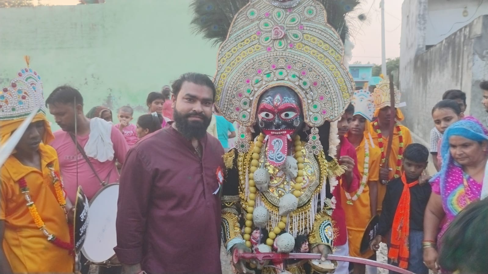 शिकारपुर : ।भारत पुष्प। नवरात्रि के पावन पर्व पर सोमवार को गांव खकूंडा परंपरागत मां काली की शोभायात्रा का आयोजन किया गया। ग्रामीणों ने जगह-जगह मां काली की शोभायात्रा का पुष्प वर्षा करो स्वागत किया है। शोभायात्रा के दौरान ग्रामीण भक्ति संगीत पर झूमते नजर आए हैं। शिकारपुर के गांव खकूंडा पंचम नवरात्र को मां काली की शोभायात्रा का आयोजन किया गया। आयोजित मां काली की शोभायात्रा का शुभारंभ बॉबी शर्मा व भाजपा नेता विनय पंडित ने संयुक्त रूप से दीप प्रज्वलित पूजा अर्चना कर किया। आयोजित मेला में काफी संख्या में स्थानीय लोग पहुंचे हैं।कार्यक्रम अध्यक्ष बॉबी शर्मा ने बताया नवरात्र में पंचमी के दिन गांव में परंपरागत मां काली की शोभायात्रा का आयोजन किया जाता है। जिससे पूर्व में रामचरितमानस का भी पाठ कराया जाता है। गांव के युवाओं और बुजुर्गों से प्रेरणा लेकर मेले का आयोजन किया जाता है। गांव में जगह-जगह ग्रामीणों ने मां काली की शोभायात्रा का स्वागत किया है। ग्रामीणों ने मां काली की पूजा अर्चना के बाद तलवार से फल और गोला भी कटवाया है। मां काली की शोभायात्रा के मेला में आस पास के गांव के युवाओं ने भी हिस्सा लिया है। शोभायात्रा में बज रहे भक्ति संगीत पर ग्रामीण युवा सहित बुजुर्ग झूम के नजर आए हैं। इस अवसर पर मनोज शर्मा, सतवीर शर्मा, मुकेश शर्मा, राकेश शर्मा, पपिल कुमार, सिंटू, मोनू रावत, उपेंद्र शर्मा, साहिल, जीतेन्द्र शर्मा, अमन, मूला, विवेक पंडित, हपुआ ठेकेदार, कुलदीप, सागर, आदि गौड़, आयुष तोमर, पवन रावत, सुनील चौधरी व नविन रावत आदि मौजूद रहे।