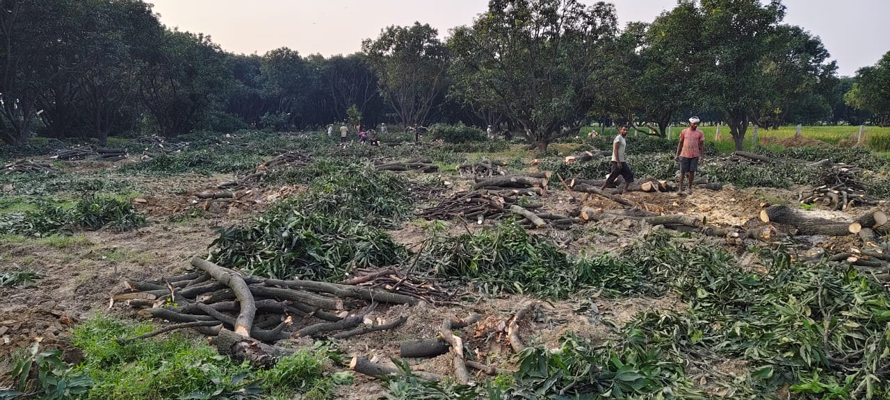 छतारी : ।भारत पुष्प। वन विभाग और पुलिस की मिली छतारी क्षेत्र ने रोगग्रस्त बताकर आम के हरे पेड़ों का कटान हो रहा है। जहां लगातार ठेकेदार आम के हरे पेड़ों को काटने में लगे हैं। बरखेड़ा हसनगढ़ी में परमिशन की आड़ में बिना परमिशन के आम पेड़ों का कटान किया जाता है। मामले में जिम्मेदार अधिकारी बेखबर हैं। छतारी के अलीगढ़ अनूपशहर रोड़ पर गांव बरखेड़ा हसनगढ़ी स्थित है। नेशनल हाईवे पर गांव बरखेड़ा रोड के किनारे ठेकदार द्वारा आम के हरे पेड़ों का कटान किया जा रहा है। बीते दिनों जिन आम के पेड़ों पर फल आए थे। अब विभाग द्वारा आम के हरे पेड़ों को रोगग्रस्त करते हुए काटन की परमिशन दी गई है। आरोप है, लकड़ी ठेकेदार द्वारा परमिशन से अधिक आम के हरे पेड़ों का कटान किया जा रहा है। मामले में वन विभाग के अधिकारियों द्वारा फोन रिसीव नही किया।