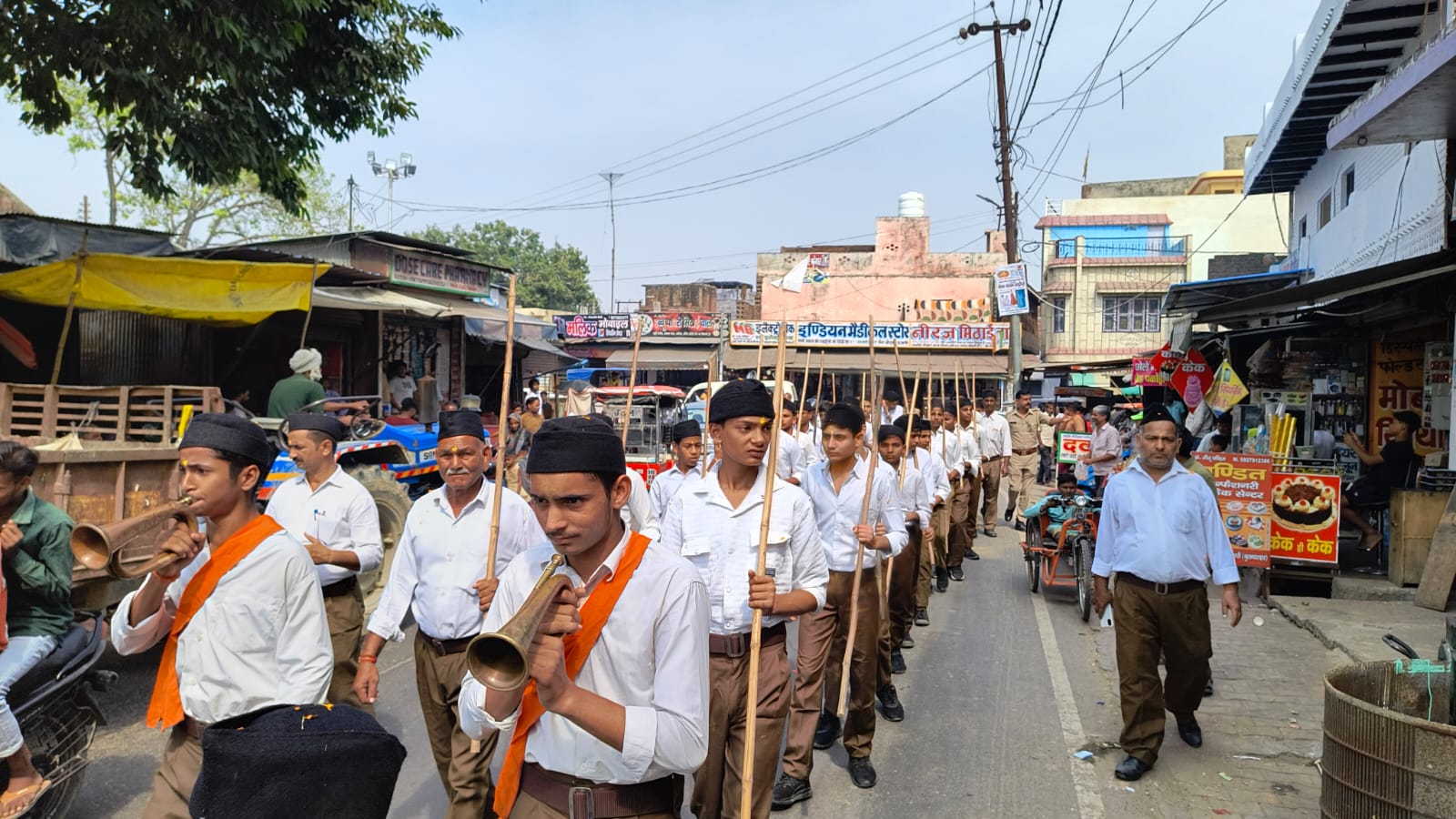 छतारी : ।भारत पुष्प। विजयादशमी के पावन पर्व पर रविवार को छतारी में राष्ट्रीय स्वयंसेवक संघ द्वारा पथ संचलन किया गया। कस्बा के लोगों ने व्यापारियों के साथ जगह-जगह के दौरान पुष्पवर्षा कर पथ संचलन स्वागत किया है। छतारी के सरस्वती विद्या मंदिर प्रांगण से राष्ट्रीय स्वयंसेवक संघ द्वारा विजया दशमी पर पथ संचलन का आयोजन किया गया। कार्यक्रम के शुभारंभ के दौरान मुख्य वक्ता किशनपाल ने कार्यक्रम के दौरान बताया हम सभी स्वयंसेवक राष्ट्र के लिए निस्वार्थ भाव से कार्य करते हैं। उसी दौरान बताया कि संघ ने सौ वें वर्ष में प्रवेश कर लिया है। इस लिए हम सभी हिन्दुओ को एक जुट रहना हैं। पथ संचलन शिशु मंदिर से शुरू कर गांधी चौक, होली चौक, महावीर बाजार, आजाद रोड़ से होते हुए पुनः सरस्वती विद्या मंदिर में जाकर समाप्त हो गया। पथ संचलन का कस्बा के व्यापारियों सहित स्थानीय लोगों ने पुष्पवर्ष पर स्वागत किया। पथ संचलन के कार्यक्रम की अध्यक्षता श्रीओम शर्मा (जयरामपुर) ने की। इस अवसर पर सचिन शर्मा, सोमवीर सिंह, अरविंद राठौर, अनुज शर्मा, राजीव, खजान सिंह, अशोक तोमर, अक्षत वार्ष्णेय, कमल आदि मौजूद रहे।