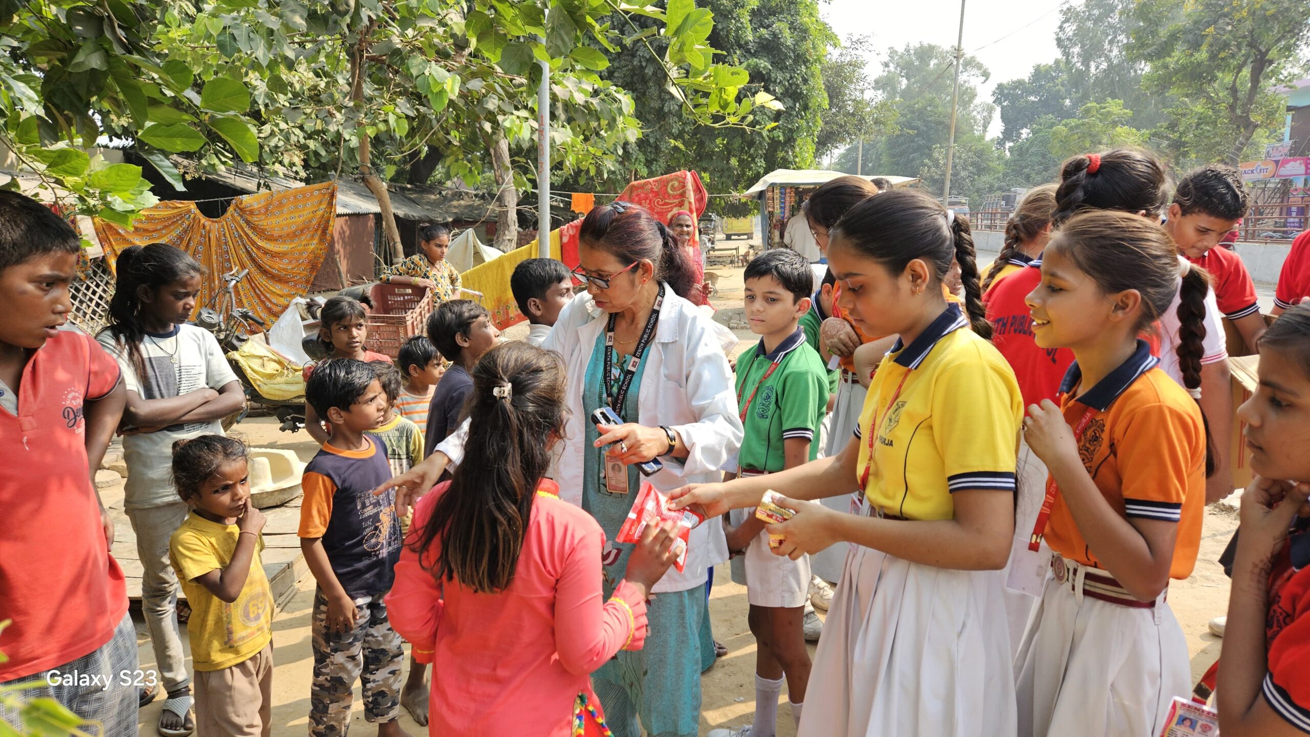 खुर्जा। ।भारत पुष्प। नगर स्थित जैनिथ पब्लिक स्कूल के सभी, किडर गार्डन से लेकर दसवीं कक्षा तक के छात्र-छात्राओं ने खाने-पीने तथा वस्त्र आदि आवश्यक वस्तुएं जरूरतमंद लोगों को उपहार स्वरूप भेंट किया। कार्यक्रम के दौरान प्रबंधक राहुल राठी प्रधानाचार्या गीता डैंग जी, उप प्रधानाचार्या बबीता शर्मा तथा समस्त अध्यापक गणों ने भी योगदान दिया। आवश्यकता पूर्ण सामग्री पाकर बच्चे तथा बड़े सभी प्रसन्न नजर आये। इस मौके पर प्रबंधक राहुल राठी ने बच्चों को समझाया कि हमेशा हमें जरूरतमंद लोगों की सहायता के लिए तत्पर रहना चाहिए।