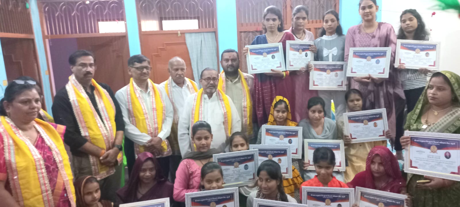 खुर्जा। ।भारत पुष्प। श्री भक्त हनुमान निःशुल्क सिलाई प्रशिक्षण केंद्र द्वारा संचालित सिलाई में प्रशिक्षित 28 कन्याओं और महिलाओं को श्री भक्त हनुमान सेवा समिति ट्रस्ट (पंजीकृत) और सेवा समिति (पंजीकृत) खुर्जा के तत्वावधान में प्रमाण पत्र दिए गए। जिससे वह स्वावलंबी बन सके। इस अवसर पर जिला अध्यक्ष डीसी गुप्ता ने कहा कि प्रशिक्षिका पूजा अग्रवाल के कुशल नेतृत्व में कन्याओं और महिलाओं ने भरपूर सिलाई सिखी और अजमेर सिंह वालिया जीके कुशल इंजीनियरों द्वारा एडवांस सिलाई मशीन द्वारा एडवांस सिलाई की शिक्षा भी दी गई। प्रणाम स्वरूप परीक्षार्थियों ने सुंदर-सुंदर कपड़े तैयार किए और अपनी फाइलें निर्णायक कमेटी के सदस्य एडवोकेट ममता अग्रवाल, एडवोकेट नवीन कुमार गुप्ता, कोषाध्यक्ष सरिता गुप्ता को अवलोकन कराईं। जिनमें से पांच सर्वश्रेष्ठ फाइलों को उत्तम स्थान मिला जिन्हें 25 दिसंबर को पंडित मदन मोहन मालवीय जी की जयंती पर, एक भव्य प्रोग्राम में घोषित किया जाएगा और उन्हें सम्मानित भी किया जाएगा। 25 दिसंबर को ही सर्वजातीय सामूहिक वैवाहिक परिचय सम्मेलन भी मनाया जाएगा। इस अवसर पर संस्थापक चंद्र मोहन मित्तल ने कहा कि इस बार 5 मार्च को सर्वजातीय सामूहिक विवाह का आयोजन अलीगढ़ में रखा गया है। जिसमें गरीब कन्याओं का निशुल्क सामूहिक विवाह किया जाएगा और घर गृहस्थी का सभी आवश्यक सामान भरपूर दिया जाता है और दूल्हे राजा की सामूहिक बारात भी बहुत ही भव्यता के निकाली जाती है। नगर सचिव नवीन कुमार एडवोकेट ने कहा कि 14 नवंबर से 24 दिसंबर-24 तक वैवाहिक परिचय सम्मेलन तथा सामूहिक विवाह के लिए रजिस्ट्रेशन खुलेंगे। अधिक से अधिक कन्याओं का विवाह करायें पुण्य लाभ कमाए और दान की राशि पर सेक्शन 80 G में छूट का लाभ उठाएं। कार्यक्रम में जिला अध्यक्ष डीसी गुप्ता, जिला महामंत्री सचिन अग्रवाल पत्रकार, नगर अध्यक्ष पीयूष अग्रवाल कबाड़ी, उपाध्यक्ष नवीन बंसल ऑटो पार्ट्स वाले, नगर सचिव नवीन कुमार गुप्ता, कोषाध्यक्ष सरिता गुप्ता, लॉ एडवाइजर एडवोकेट ममता अग्रवाल, प्रचार सचिव विकास वर्मा, मुख्य प्रशिक्षिका पूजा अग्रवाल, अजमेर सिंह वालिया, महेश भार्गव, अजय कौशल, रमेश चंद्र वर्मा, शेखर वर्मा, राम दिवाकर आदि मौजूद रहे।