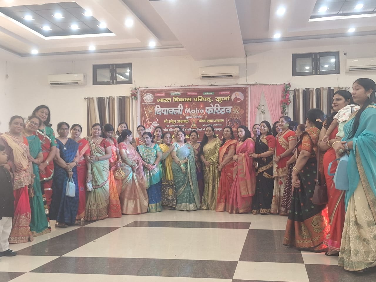 खुर्जा। ।भारत पुष्प। भारत विकास परिषद द्वारा दीपावली महा फेस्टिव का आयोजन उत्सव बैंक्विट में किया गया। जिसमें बड़ी संख्या में सदस्य परिवारों ने भाग लिया। कार्यक्रम के मुख्य अतिथि अंकुर अग्रवाल प्रांतीय अध्यक्ष समूह गान मुक्ता अग्रवाल दीप प्रज्वलन करके कार्यक्रम का शुभारंभ किया। शाखा की महिला संयोग का पूजा तायल ने सभी का स्वागत किया और सभी परिवारों को गिफ्ट प्रदान कराई। दिल्ली गाजियाबाद की कलाकारों की टीम ने मद्रासी गुजराती महाराष्ट्र के दीपावली संगीत व नृत्य से सभी को भाव विभोर कर दिया।