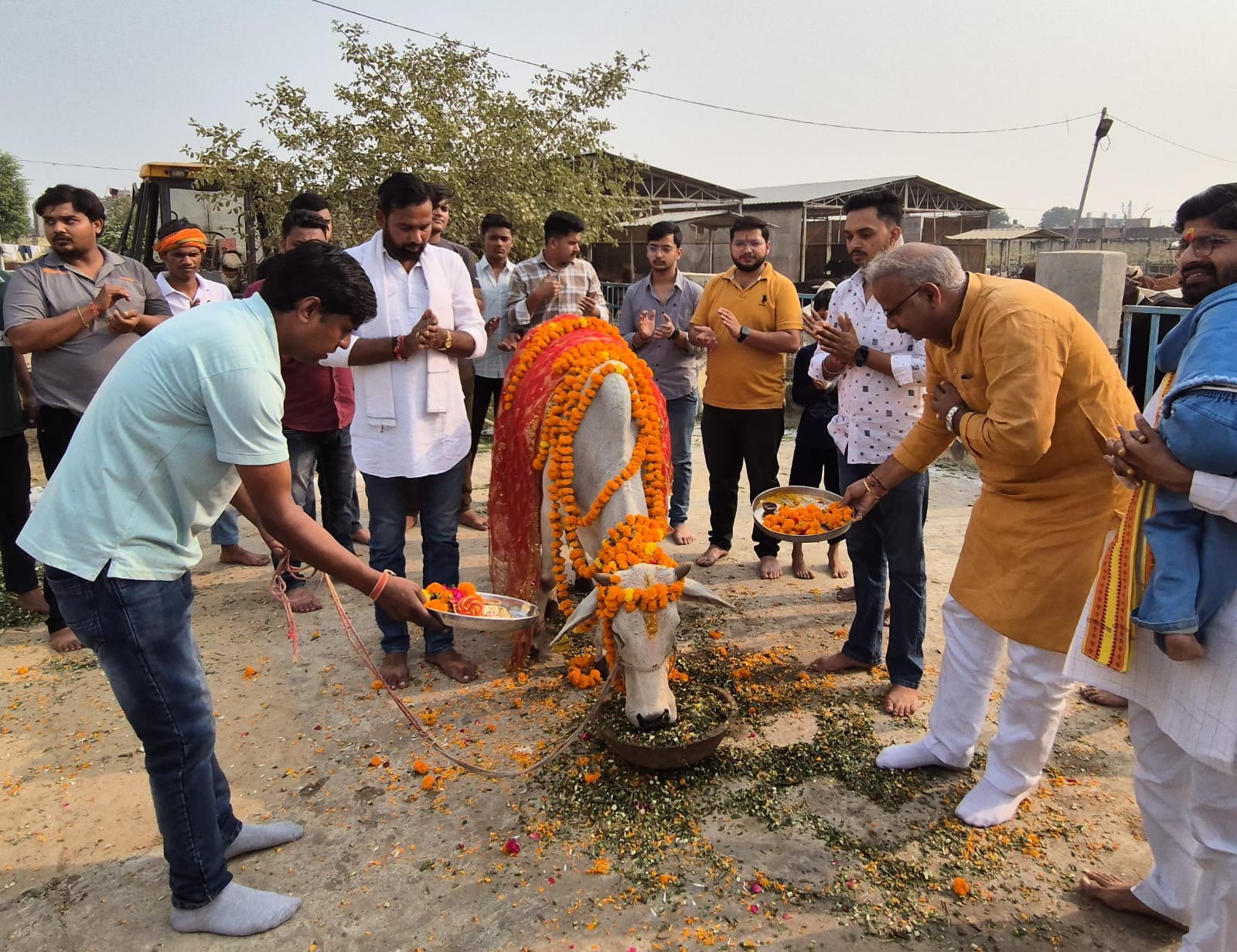 बुलंदशहर। ।भारत पुष्प। राष्ट्र चेतना मिशन के कार्यकर्ताओं ने कान्हा गौशाला में धूमधाम से गोपाष्टमी पर्व मनाया। गौमाता की पूजा अर्चना कर गौसेवा तथा गौपालन का संकल्प लिया। संस्था की ओर से 51 कुंटल भूसा, 31 कुंटल हरा चारा एवं 50 किलो गुड़ का सहयोग किया गया। कार्यक्रम में संगठन के दर्जनों पदाधिकारी सपरिवार उपस्थित रहे। अनूपशहर रोड पर नई मंडी स्थित कान्हा गौशाला पर राष्ट्र चेतना मिशन अध्यक्ष हेमन्त सिंह के संयोजन में आयोजित भव्य कार्यक्रम में स्वस्ति वाचन एवं वैदिक मंत्रोच्चार के साथ गौमाता का पूजन, आरती, पुष्पवर्षा कर लोक कल्याण की प्रार्थना की गई। सभी ने गुड़, मिठाई, हरा चारा खिलाकर गौमाता के चरण स्पर्श कर वंदन किया। राष्ट्र चेतना मिशन के अध्यक्ष हेमन्त सिंह ने कहा कि दीपावली एवं गोवर्धन पर्व के उपरांत अष्टमी के दिन ही भगवान श्रीकृष्ण ने बाल्यकाल में गौ-चारण प्रारम्भ किया था, जिसके बाद से ही गौसेवा के पुण्य पर्व गोपाष्टमी के रूप में दुनिया भर में मनाया जाता है। समारोह में हेमन्त सिंह, प्रियंका सिंह, भाजपा नेता लोकेन्द्र सिंह, नवीन गर्ग, देवेश शर्मा, निशान्त अग्रवाल, भरत शर्मा, पुनीत लोधी, तुषार लोधी, विपिन पाल, रवि पाल, पंकज उपाध्याय, अरुण राजपूत, गिरधर चौधरी, गौरीशंकर राजपूत, पिंटू लोधी, प्रशान्त सक्सेना, आरव कुमार, हेमन्त गुप्ता, जीतू गुप्ता आदि ने विधिवत पूजन कर गौमाता के आहार हेतु सामूहिक योगदान अर्पित किया।