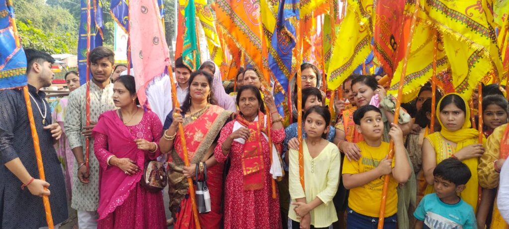 खुर्जा। ।भारत पुष्प। श्री श्याम संकीर्तन मंडल के तत्वाधान में सोमवार को श्री खाटू श्याम जी की निशान यात्रा का धूमधाम से आयोजन किया गया। निशान यात्रा से पूर्व विधिवत रूप से पूजा अर्चना की गई। तत्पश्चात निशान यात्रा श्री नवदुर्गा शक्ति मंदिर से प्रांरभ होकर जेवर अड्डा चौराहा पद्दम की पुलिया पुरानी तहसील बस स्टैंड मूंडा खेडा चौराहा नेहरूपुर चुंगी बुर्ज उस्मान खां सब्जी मंडी ककराला कबाडी बाजार पदम सिंह गेट होते हुए लाडली दास मंदिर पर पहुंची जहां निशान यात्रा का समापन किया गया।
