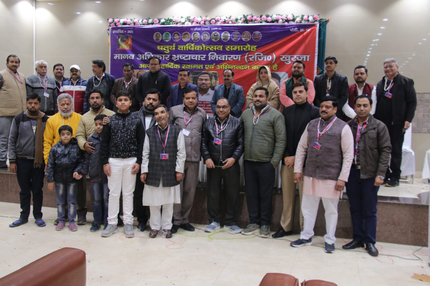 खुर्जा। ।भारत पुष्प। मानव अधिकार भ्रष्टाचार निवारण चतुर्थ वार्षिक उत्सव का कार्यक्रम आयोजित किया गया। कार्यक्रम में उपस्थित मुख्य अतिथि राहुल सिंह, विशेष आमंत्रित अतिथि ब्लॉक प्रमुख मोनिका सिंह,नगर पालिका अध्यक्ष अंजना सिंघल व विशिष्ट अतिथियों द्वारा दीप प्रज्वलंकर कार्यक्रम का शुभारंभ किया। कार्यक्रम में जरूरतमंदों को स्वेटर व कंबल वितरण किये। कार्यक्रम में गोपाल कृष्ण, विकास गोयल,संजीव मित्तल, बॉबी सैनी,विपिन गोयल ,राम दिवाकर, दिनेश वर्मा दुष्यंत जैन,रवि प्रकाश कौशल,वीरेंद्र कुमार गुप्ता, विनोद खुराना, पुरनचंद शर्मा, अनुपम माथुर, राजकुमार गुप्ता, जितेंद्र गोस्वामी, अतुल गोविल,शेखर वर्मा,संजीव अग्रवाल,शिव शंकर कौशिक, दयाशंकर शर्मा, अमित अग्रवाल, अखिलेश गुप्ता ,मुकेश कुमार, नगर कमेटी के समस्त पदाधिकारी एवं सदस्य गण उपस्थित रहे। आदर्श शिशु मंदिर के बच्चों ने प्रस्तुति कर सभी का मन मोह लिया। कार्यक्रम का संचालन वरिष्ठ उपाध्यक्ष विपिन सिसोदिया ने किया।