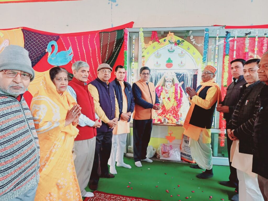 खुर्जा। ।भारत पुष्प। विद्या भारती अखिल भारतीय शिक्षा संस्थान से संबद्ध श्रीमती सावित्री देवी लक्ष्मी चंद्र सरस्वती विद्या मंदिर जंक्शन मार्ग खुर्जा में सोमवार को ज्ञान की अधिष्ठात्री देवी माँ शारदे का जन्मोत्सव बड़े ही धूमधाम के साथ मनाया गया । जिसमें विद्यालय के कोषाध्यक्ष रामकिशन बंसल ने सपत्नीक यज्ञ के समक्ष मुख्य यजमान के रूप में उपस्थित रहे।