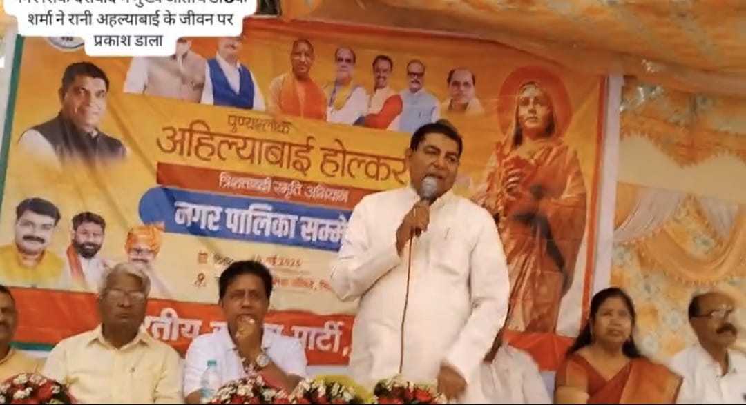 सिकंद्राबाद। ।भारत पुष्प/पवन शर्मा। भारत देश में काफी ऐसी महिलाओं ने जन्म लिया है जिन्होंने समाज की आन-बान-शान की ख़ातिर अपने पूरे जीवन को खफा दिया ओर पूरे देश में नाम कर दिया उसने से एक महिला को रानी अहिल्याबाई होल्कर के नाम से जाना जाता है इस शिव भक्तनी महान् महिला ने अपना जीवन समाज सुधारने में खफा दिया उसी महान् महिला को भाजपा सरकार ने सम्मान देकर उसकी  300 वीं जयंती पूरे देश में समय समय पर मनायी जा रही है और उसकी  जीवनगाथा पर प्रकाश डाला जा रहा है। उसी क्रम में नगर पालिका सिकन्दराबाद परिसर में रानी अहल्याबाई होल्कर की 300 वीं जयंती के अवसर पर एक कार्यक्रम आयोजित किया गया। इस कार्यक्रम की अध्यक्षता नगर अध्यक्ष त्रिवेश गुप्ता ने की ओर इस कार्यक्रम में मुख्य अतिथि प्रदेश संयोजक सहकारिता  डीके शर्मा ओर विशिष्ट अतिथि नगर पालिका चेयरमैन डा0 प्रदीप दीक्षित रहे। इस कार्यक्रम का शुभारंभ रानी अहल्याबाई के चित्र के सम्मुख दीप जलाकर पुष्प अर्पित कर किया गया। मंच संचालन केशव दीक्षित एवं नरेंद्र सैनी नगर महामंत्री ने किया। इस कार्यक्रम के मंच पर मुख्य अतिथि प्रदेश संयोजक सहकारिता डी0के, नगर पालिका चेयरमैन डा0 प्रदीप शर्मा, नगर अध्यक्ष त्रिवेश गुप्ता, अनिरुद्व शास्त्री, सांसद प्रतिनिधि सुरेश चंद शर्मा बोडा, अरविंद दीक्षित, अवनीश गुप्ता, हेंमत शर्मा, ऊषा बंसल मंचासीन रहे। कार्यक्रम में सभी मंचासीनों ने रानी अहल्याबाई की जीवनगाथा पर प्रकाश डालते हुए अपने अपने सुविचार रखें। मुख्य अतिथि व नगर चेयरमैन ने रानी अहल्याबाई को शिव भक्तिनी बताते हुए कहा की रानी अहल्याबाई एक समाज सुधारक थी जिसने अपना पूरा जीवन समाज सेवा में लगा दिया। इस अवसर पर सांसद प्रतिनिधि सुरेश शर्मा, जिला उपाध्यक्ष चूस बांसली, जिला मंत्री अरविंद दीक्षित,  हेमंत शर्मा, नरेंद्र सैनी श, केशव दीक्षित, प्रेम राणा, कोषाध्यक्ष सुबीन भारद्वाज, नगर अध्यक्ष किसान मोर्चा धनेश्वर सैनी, नगर अध्यक्ष युवा मोर्चा रवि लोधी, मंडल उपाध्यक्ष सजल गर्ग, संजना राही, शक्ति केंद्र संयोजक सोनू सैनी, ललित शर्मा, पवन लोधी, अमर सिंह सैनी, विजेंदर प्रजापति, पन्नालाल प्रजापति, साधना शर्मा जी प्रदीप शर्मा रिक्की सरदार सहित सैकड़ो पदाधिकारी कार्यकर्ता मौजूद रहे।