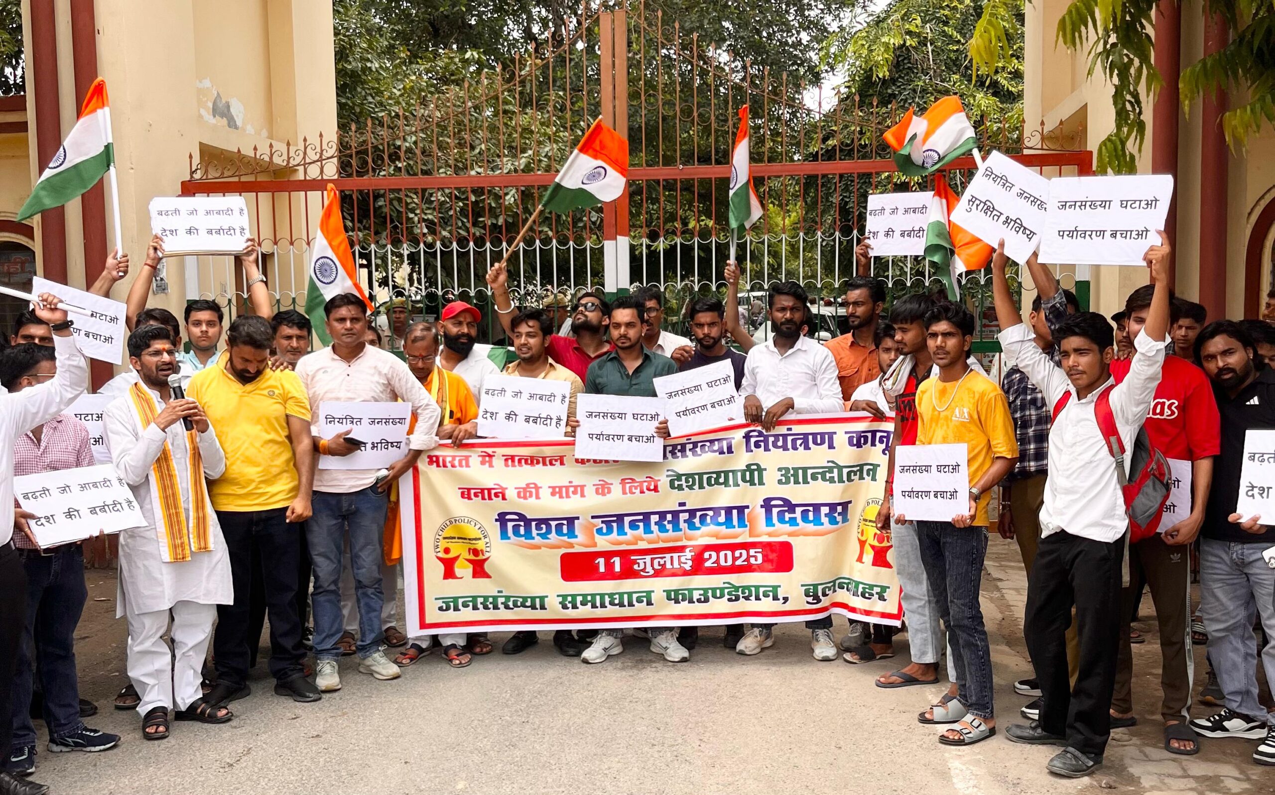 अंधाधुंध जनसंख्या के कारण ही देश में गरीबी, बेरोजगारी, अपराध, सांप्रदायिक तनाव आदि अनेक समस्याएं विकराल रूप ले रही हैं। भारत के भविष्य को बचाने हेतु जनसंख्या समाधान फाउंडेशन द्वारा पिछले 10 वर्षों से लगातार देश भर में व्यापक जन आंदोलन और जनजागरण अभियान चलाया जा रहा है। दर्जनों कार्यकर्ताओं ने देशहित में शीघ्र कठोर जनसंख्या नियंत्रण कानून बनाने के लिए प्रधानमंत्री को संबोधित 8 सूत्रीय ज्ञापन कलेक्ट्रेट में एसडीएम राकेश कुमार मौर्य को सौंपा। प्रदर्शन में राष्ट्रीय हिन्दू फ्रंट के जिलाध्यक्ष हेमन्त सिंह, महामंत्री पिंटू गुर्जर, कृष्ण मिश्रा, न्यू गुप्ता, नमन कौशिक, काशी राठौर, रामअवतार लोधी, आमोद कुमार मीणा, विकास सिंह, हिमांशु गर्ग, रवि पाल, सनी हिंदू, मुकुल ठाकुर, निशान्त अग्रवाल, शुभित अग्रवाल, हिमांशु वाल्मीकि, महेश लोधी, प्रशांत ठाकुर, अजयवीर भाटी, चाहत राजपूत, अरुण राजपूत, शिवम चौधरी, देवेश शर्मा, लकी पंडित, कुलदीप अग्रवाल, विशाल पंडित, प्रवीण ठाकुर, आदि सम्मिलित रहे।