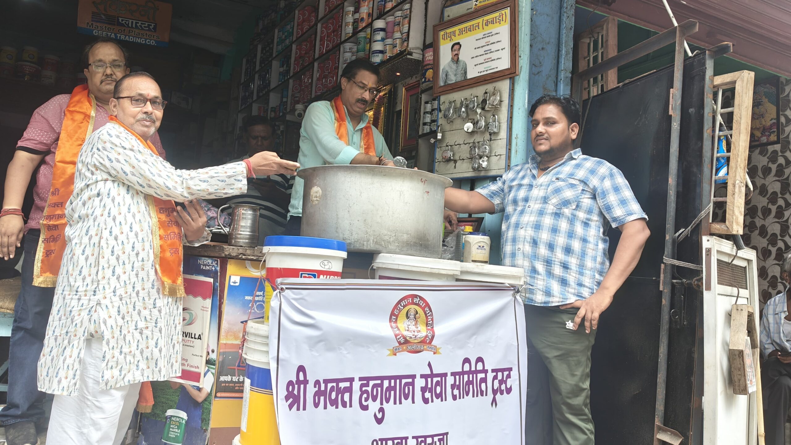 खुर्जा: ।भारत पुष्प। पवित्र सावन मास के प्रथम सोमवार को श्री भक्त हनुमान सेवा समिति ट्रस्ट के अध्यक्ष पीयूष अग्रवाल के व्यापारिक पर खीर के प्रसाद का भक्तों में वितरण हुआ। इस अवसर पर डीसी गुप्ता कांटे वाले जिला अध्यक्ष ने बताया कि अगले सोमवारको प्रसाद के रूप में भोले की ठंडाई का वितरण भक्तों में किया जाएगा। इस अवसर पर जिला उपाध्यक्ष बसंत कानोडिया ने कहा कि सावन मास के हर सोमवार को भक्तों में प्रसाद का वितरण श्री भक्त हनुमान सेवा समिति ट्रस्ट शाखा खुर्जा के तत्वाधान में किया जाता रहेगा। इस अवसर पर पीयूष अग्रवाल, नवीन बंसल, रिंकू अग्रवाल मोबाइल वाले, डीसी गुप्ता, बसंत कानोडिया, संजय गर्ग, नेहा अग्रवाल,डॉ अमर आदि का सहयोग प्राप्त हुआ।