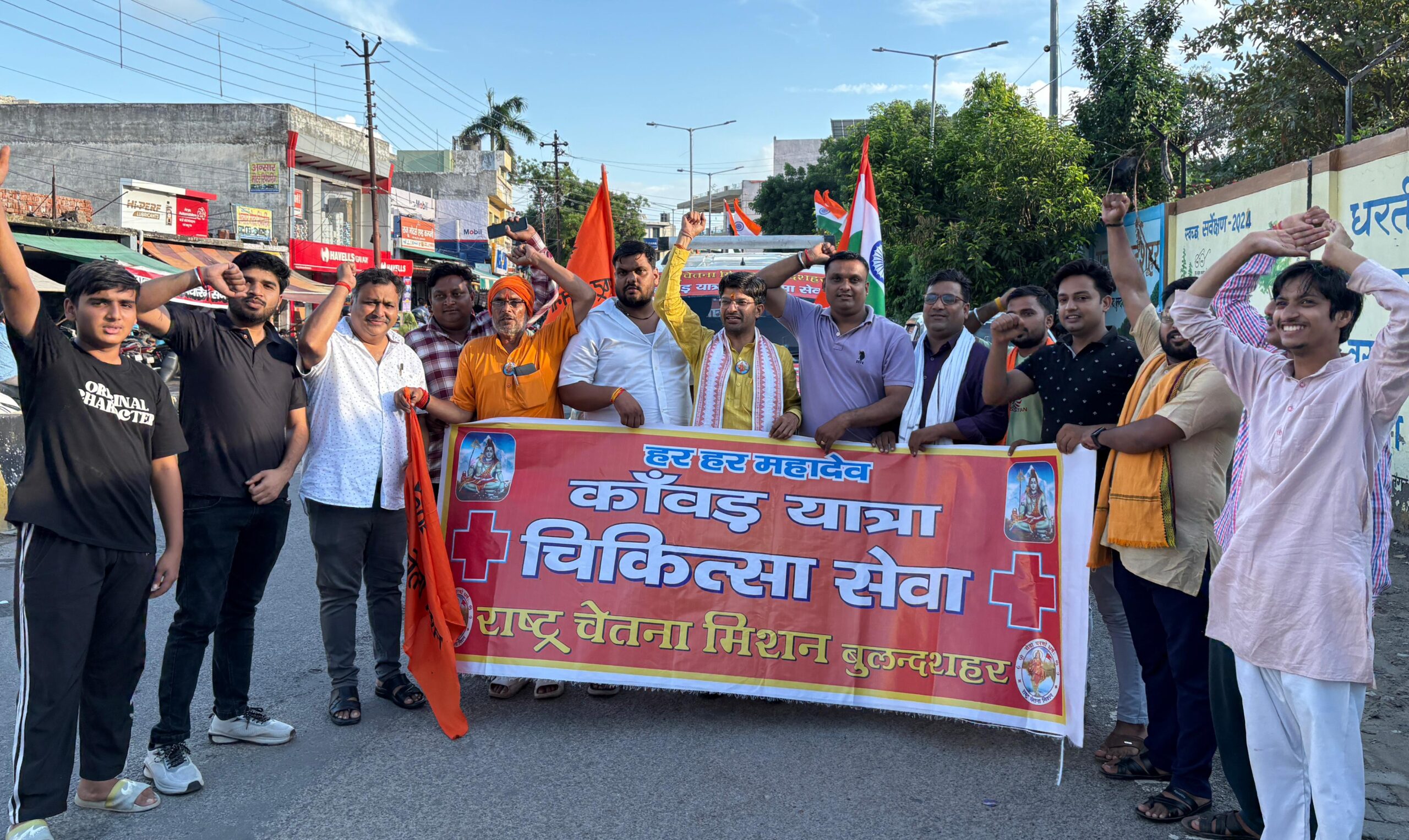 बुलंदशहर। ।भारत पुष्प। श्रावण मास की कांवड़ यात्रा मार्ग पर हरिद्वार की ओर से पवित्र गंगा जल लेकर पैदल यात्रा कर रहे शिवभक्तों की चिकित्सा सेवा के लिए राष्ट्र चेतना मिशन की टीम ने बुलंदशहर से प्रस्थान किया। संस्था के संरक्षक सीए मनीष मांगलिक ने राजे बाबू रोड स्थित कार्यालय से भगवा ध्वज दिखाकर टीम के 5 वाहन और 2 दर्जन कार्यकर्ताओं को बुलंदशहर से हरिद्वार के लिए रवाना किया। राष्ट्र चेतना मिशन के अध्यक्ष हेमन्त सिंह ने बताया कि बुलंदशहर से अलग अलग दिशा में कांवड़ यात्रा मार्ग पर संस्था की 4 टीमें सेवा में लगती हैं, जो सैकड़ों किलोमीटर की यात्रा से लौट रहे कांवड़ियों के पांव के छालों और घावों की मरहम पट्टी करते हुए, कमर दर्द, पैर दर्द, सिरदर्द, पेट खराब, बुखार, आंखों में जलन, आदि समस्याओं का प्राथमिक उपचार कर उनके शारीरिक कष्टों को कुछ कम करने का प्रयास करते हैं। विगत 13 वर्षों से संचालित सेवा में कांवड़ यात्रा के दौरान हरिद्वार, रुड़की, मुजफ्फरनगर, खतौली, मेरठ और हापुड़ के साथ ही बुलंदशहर जिले के विभिन्न क्षेत्रों में कार्यकर्ता सेवा प्रदान करते हैं। महाशिवरात्रि तक चलने वाली राष्ट्र चेतना मिशन की चिकित्सा सेवा टीम में अध्यक्ष हेमन्त सिंह, आचार्य कृष्ण मिश्रा, विकास सिंह, आशू पंडित, ललित चौहान,  संकेत चौहान, शुभ शर्मा, पवन शर्मा, अरुण राजपूत, शुभित अग्रवाल, दीपक राजपूत, तुषार गुप्ता, राम अवतार लोधी, प्रयाग अग्निहोत्री, कार्तिक सागर आदि सम्मिलित हैं।