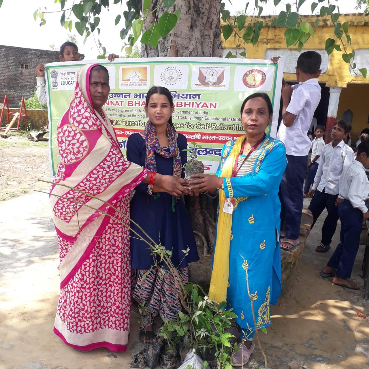 खुर्जा। ।भारत पुष्प। एकेपी डिग्री कॉलेज द्वारा अन्नत भारत अभियान के तहत अंगीकृत गाँव धराऊ में वृक्षारोपण अभियान चलाया गया  । यूवीए समन्वयक डॉ रेखा चौधरी, आंगनबाड़ी संचालिका ममता, पंचायत सहायक, माध्यमिक स्कूल के शिक्षक गण के साथ मिलकर स्कूल प्रांगण आंगनबाड़ी केंद्र पंचायत भवन के आस पास जामुन, नीम और कचनार के पौधे रोपित  किए गए । इस अवसर पर माध्यमिक स्कूल के विद्यार्थियों का सहयोग सराहनीय रहा । ग्रामीणों, विद्यार्थियों को तुलसी के पौधे भी वितरित कर पर्यावरण संरक्षण का संकल्प दिलाया गया ।महाविद्यालय की प्राचार्य प्रो डिंपल विज के निर्देशन में चल रहे पौधारोपण अभियान का उद्देश्य प्रदूषण मुक्त नगर प्रदूषण मुक्त गाँव बनाना है ।