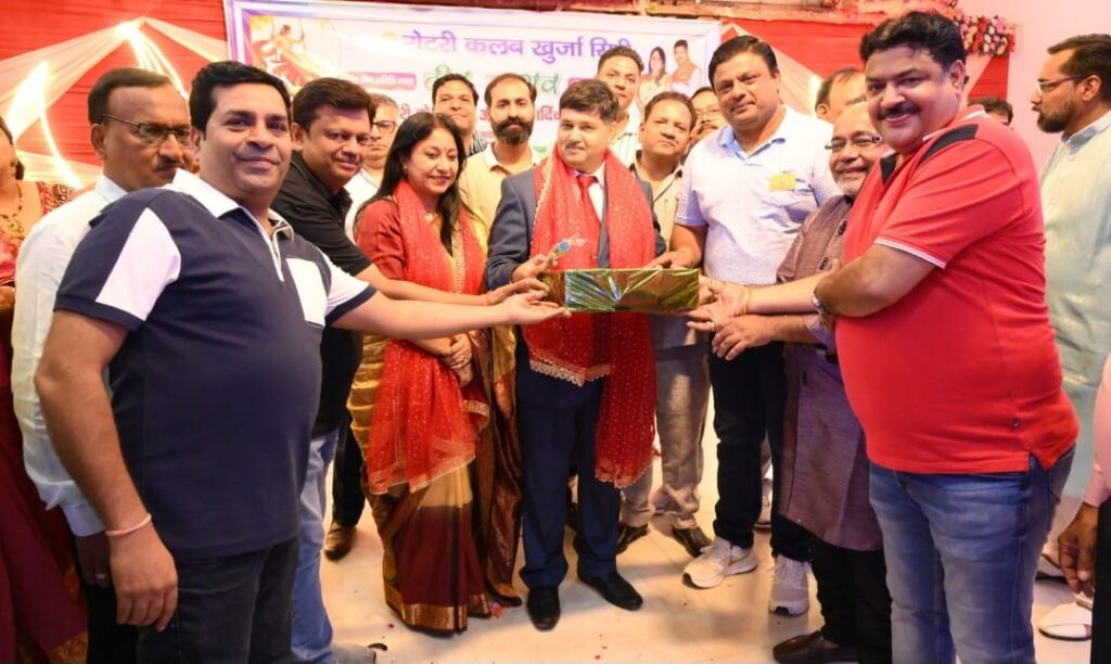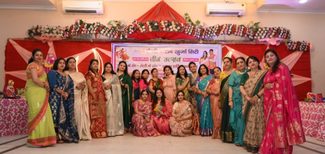 खुर्जा। ।भारत पुष्प। रविवार को रोटरी क्लब खुर्जा सिटी द्वारा तीज मिलन कार्यक्रम का आयोजन भव्यता के साथ में आयोजित किया गया। कार्यक्रम के शुभारंभ गणेश वंदना, शिव स्तुति, भरतनाट्यम, राधा कृष्ण की फूलों की होली के नृत्य से हुआ। कार्यक्रम में मुख्य अतिथि काव्य सौरव रस्तोगी मनोनीत मंडल अध्यक्ष व तृप्ति रस्तोगी मुरादाबाद से रहे। मुख्य अतिथि ने अपने उद्बोधन में रोटरी क्लब खुर्जा सिटी को मंडल के जीवंत क्लब में बताएं उन्होंने कहा कि सभी सदस्यों में और उनकी एने में भरपूर ऊर्जा और कार्यक्रम के प्रति लगन आपसी सद्भाव देखने को मिला जो कि रोटरी के अंदर एक उदाहरण है। कार्यक्रम का संचालन क्लब संरक्षक राजीव बंसल ने किया। तीज कार्यक्रम में मुख्य रूप से संयोजक कल्पना वर्मा कुमकुम सराफ निमिषा जैन ने कार्यक्रम में चार चांद लगा दिए रोटरी महिलाओं के आगमन से लेकर प्रस्थान तक जिस प्रकार तीज का परिदृश्य दिखा वह अपने आप में मनोरम था।