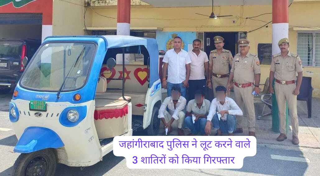 जहांगीराबाद। ।भारत पुष्प/पवन शर्मा। पुलिस ने लूट की घटनाओं को अंजाम देने वाले 3 शातिर लूटेरों को 12 हजार रुपए सहित गिरफ्तार कर लिया। थाना इंचार्ज रामफल सिंह ने बताया की आज चेकिंग के दौरान लूट की वारदातों को अंजाम देने वाले 3 शातिर लूटेरों को 12 हजार रुपए सहित गिरफ्तार कर लिया और इसके कब्जे से 12 हजार रुपए नकद, 3 अवैध तमंचे 315 बोर मय 3 जिंदा कारतूस 1 ओटो रिक्शा बरामद हुए है इनके नाम संजय पुत्र पप्पू गांव नंदपुर थाना जुनावई जिला संभल, दूसरा अजयपाल उर्फ उरमान पुत्र विजयपाल गांव बझांगी थाना जुनावई संभल व तीसरा अवधेश पुत्र कल्याण सिंह दंडवाडा जुनावाई संभल के रुप में हुई है और इन लोगो ने 4 अगस्त 25 की रात्री में एक ट्रिररी चालक संग लूट की थी जिसका मुकदमा जहांगीराबाद थाना पर दर्ज था। ओर इनका अपराधिक इतिहास बहुत लंबा है। इस गिरफ्तारी में कोतवाल रामफल, उ0नि नितिन कुमार, हरीश कुमार, हे0का कुर्बान चौहान, शोभाराम, का0 सुखवैद्र सिंह, विवेक कुमार मौजूद रहे।