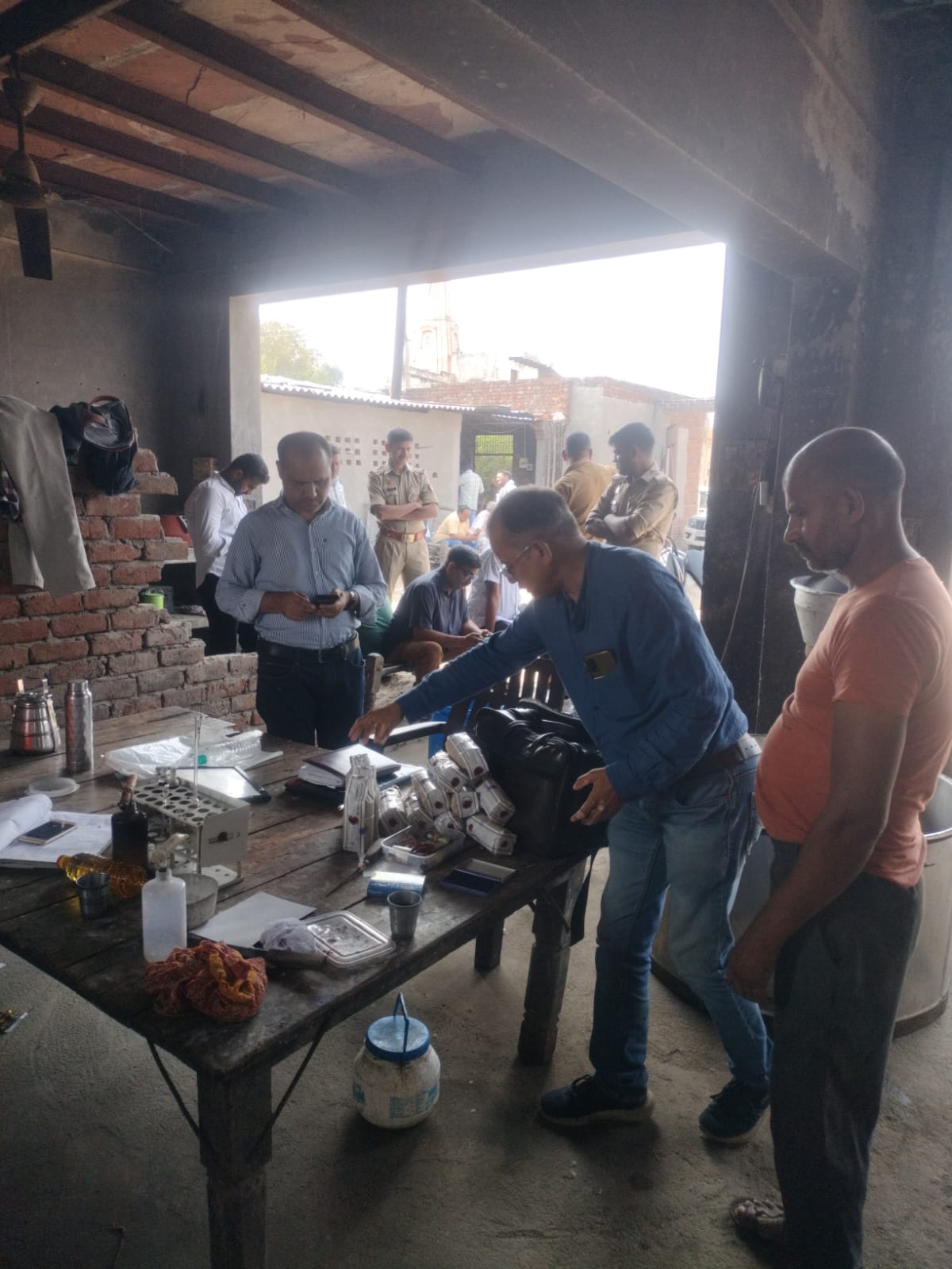 खुर्जा। ।भारत पुष्प। आयुक्त खाद्य सरुक्षा एवं औषधि प्रशासन, लखनऊ के आदेश के चलते जिलाधिकारी के निर्देशानुसार त्यौहारों के पर्व के दृष्टिगत खाद्य सुरक्षा एवं औषधि प्रशासन, विभाग द्वारा अभियान चलाया जा रहा है। खुर्जा देहात के ग्राम-डावर में नकली / सिंथेटिक दूध, मावा, पनीर बनाने की सूचना पर सहायक आयुक्त (खाद्य) ग्रेड ।। द्वारा विशेष जॉच दल का गठन कर ग्राम डॉबर स्थित अम्बे डेयरी (सन्दीप कुमार गौड) की निर्माणशाला पर छापेमारी कर मौके पर मानक के अनुरूप न होने के संदेह के आधार पर दूध, रिफाइण्ड पामोलीन ऑयल, स्किम्ड मिल्क पाउडर, के कुल-03 नमूनें संग्रहित किये गये। दूध, रिफाइण्ड व स्किम्ड मिल्क पाउडर का रख-रखाव अस्वास्थयकर एवं अस्वच्छकर अवस्था में भण्डारित होने के कारण शेष बचे हुए लगभग 12 कुन्टल पनीर, 75 किग्रा0 रिफाइण्ड पामोलीन ऑयल एवं 10 किग्रा0 स्किम्ड मिल्क पाउडर को नष्ट कराये गये। जिसकी की अनुमानित मूल्य लगभग रू0-165000/- है। इसके अतिरिक्त मै० श्री गणेश डेरी मिल्क प्रोडक्ट् (अवनेश शर्मा) के प्रतिष्ठान में से 2 दूध, 2 घी, पनीर, क्रीम के कुल-06 नमूनें संग्रहित किये गये। दूध, घी, मिश्रित दूध, व क्रीम का रख-रखाव अस्वास्थयकर एवं अस्वच्छकर अवस्था में भण्डारित होने के कारण शेष बचे हुए लगभग 125 किग्राम० पनीर पनीर नष्ट करया गया। जिसकी अनुामनित मूल्य रू0-28000/ है, एवं 80 किग्रा० घी को सीज किया गया। जिसकी अनुमानित मूल्य रू0-48000/- है। एकत्रित समस्त 09 नमूनों को जॉच हेतु राजकीय खाद्य प्रयोगशाला हेतु प्रेषित किया गया। बताया गया कि उक्त नमूनों की जॉच रिपोर्ट प्राप्त होने पर नियमानुसार अग्रिम विधिक कार्यवाही की जायेगी। सचल दल में विनीत कुमार, सहायक आयुक्त (खाद्य), नायब तहसीलदार स्याना/खुर्जा व पुलिस बल एवं मुख्य / खाद्य सुरक्षा अधिकारी अनिल कुमार सिंह, कमलेश कुमार, अनिल कुमार कौशल, पंकज वर्मा, मुनेन्द्र सिंह राना, सुनील कुमार सिंह, सनजीत कुमार मौजूद रहे।