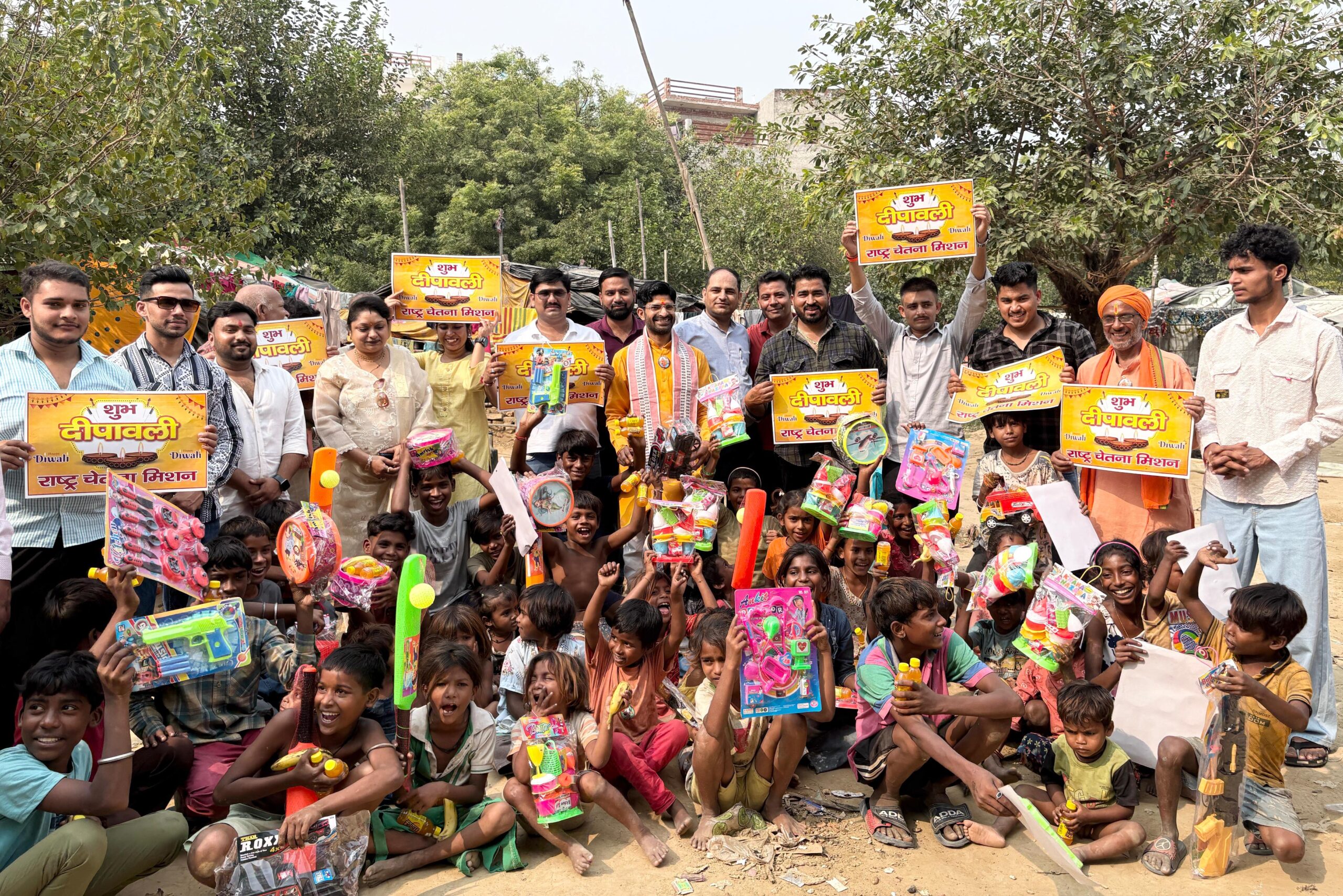 बुलंदशहर। ।भारत पुष्प। सामाजिक संस्था राष्ट्र चेतना मिशन के कार्यकर्ताओं ने नगर के सैकड़ों निर्धन और जरूरतमंद परिवारों के साथ दीपावली की खुशियाँ मनाईं। मिठाई, खिलौने और उपहार पाकर बच्चों ने भरपूर खुशी जतायी। अनूपशहर रोड स्थित झुग्गी बस्ती में कार्यक्रम संयोजक राष्ट्र चेतना मिशन के अध्यक्ष हेमन्त सिंह के साथ दर्जनों कार्यकर्ता एकत्रित हुए। सभी ने बस्ती के दर्जनों झोपड़ियों के निवासी परिवारों को मिठाई का डिब्बा एवं दीपक आदि सामग्री का गिफ्ट पैक, सभी बच्चों को खिलौने, बाँटकर दीपावली की शुभकामनाएँ प्रदान कीं। छोटे छोटे मासूम बच्चों ने ढोल नगाड़े की धुनों पर नाचकर खूब जश्न मनाया। उसके उपरान्त नगर के नई मंडी, मोहन कुटी, बाईपास रोड, विकास भवन, रोडवेज बस स्टैण्ड आदि क्षेत्रों में सड़क किनारे झुग्गी झोपड़ी में रह रहे सैकड़ों परिवारों को भी मिठाई एवं उपहार वितरित कर दीपावली की ख़ुशियाँ साझा कीं। संस्था के इस वार्षिक आयोजन में राष्ट्र चेतना मिशन के अध्यक्ष हेमन्त सिंह, कोषाध्यक्ष गौरव गर्ग, विशाल अग्रवाल, राजीव सिंघल, सचिन गर्ग, पारुल अग्रवाल, अनिल गर्ग, आचार्य कृष्ण मिश्रा, नवीन गर्ग, रामावतार लोधी, मयंक गौड़, तुषार गुप्ता, सुधीर गर्ग, देवेश शर्मा, तेजा कुमार, आरव कुमार, मुकुल राजपूत, शुभित अग्रवाल, वासु अग्रवाल, हर्ष गुप्ता, लकी पंडित आदि उपस्थित रहे।