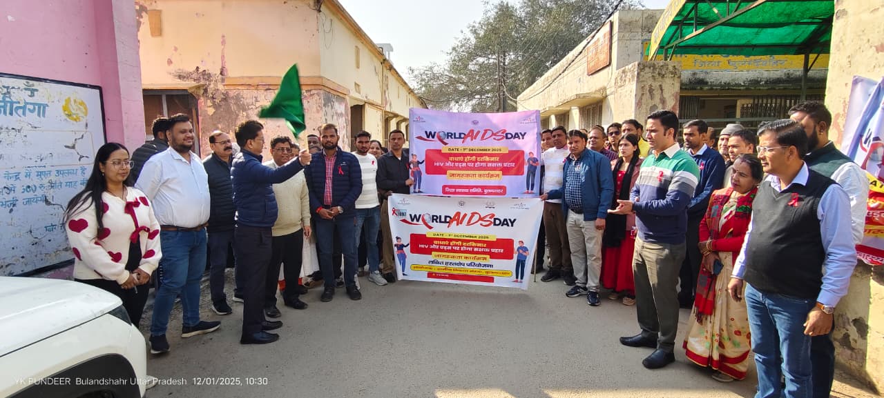 बुलंदशहर। ।भारत पुष्प/पवन शर्मा। 01 दिसम्बर को विश्व एड्स दिवस मनाया जा रहा है। उसी क्रम मे विश्व एड्स दिवस के अवसर पर स्वास्थ्य विभाग ने रैली निकालकर लोगो को जागरुक किया। जिला चिकित्सा अधिकारी की अध्यक्षता में डा0 हेमन्त रस्तोगी, जिला क्षय रोग अधिकारी, बुलन्दशहर द्वारा विश्व एड्स दिवस के उपलक्ष्य में एक रैली का आयोजन किया गया। रैली को मुख्य चिकित्सा अधिकारी सुनील कुमार दोहरे ने हरी झण्डी दिखाकर रवाना किया गया। रैली जिला चिकित्सालय से चलकर कालाआम, डिप्टीगंज होते हुए जिला चिकित्सालय में आकर संपन्न हुई। सीएमओ सुनील कुमार दोहरे ने बताया की रैली के निकालने का उद्देश्य जनता को HIV/AIDS के प्रति जागरूक करना था। रैली के समापन के उपरान्त जिला क्षय रोग अधिकारी द्वारा एक बैठक का आयोजन किया गया। इस बैठक में जिला क्षय रोग अधिकारी द्वारा ए्डस से बचाव के बारे में विस्तृत जानकारी दी गयी। बैठक में एड्स एवं टी0बी0 के समस्त कर्मचारी उपस्थित रहे।