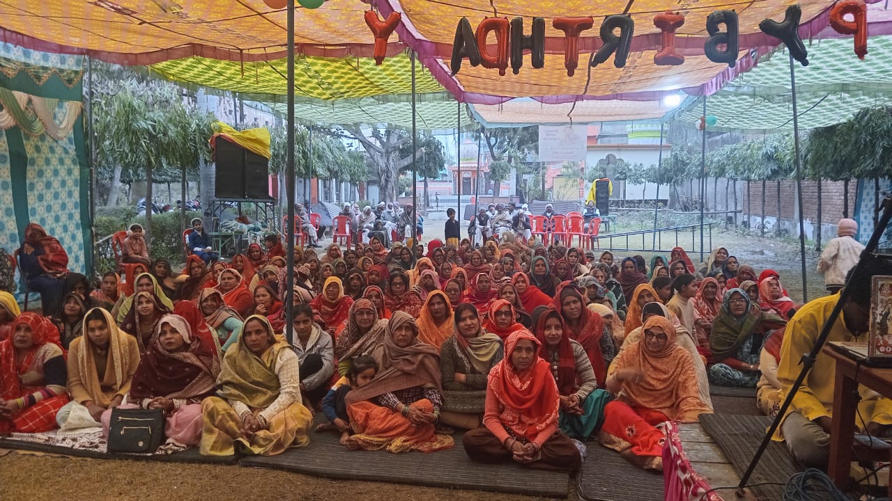 जहांगीरपुर-: (भारत पुष्प/कृष्णा वत्स) भुन्ना जाटान गांव के नव निर्माण श्री नर्मदेश्वर महादेव मंदिर के प्रांगण में भगवान शिव मूर्ति प्रतिष्ठा के पावन अवसर पर आयोजित श्री शिव महापुराण कथा आचार्य मुकेश कृष्ण जी ने भगवान शिव की लीलाओं का वर्णन करते हुए व्यास जी ने बताया भगवान शिव की कथा सुनने से मानव जीवन के करोड़ पाप नष्ट हो जाते हैं शिव पुराण में लिखा है कि जो शिव कथा सुनते हैं वह भगवान शंकर के समान है और जो भगवान शिव से निर्मित रुद्राक्ष एवं भस्म को धारण करता है वह मरने के बाद कभी यमलोक नहीं जाता वह भगवान के शिवलोक का वासी होता है। कथा में विराजमान यजमान चंद्रपाल सिंह बहोरे अपनी पत्नी के साथ कथा का श्रवण करते हुए और रमेश सिंह, मनोज कुमार, दिनेश सिंह, सुनीता, राधा, कोमल आदि सैंकड़ो भक्तों ने कथा का रसपान किया।