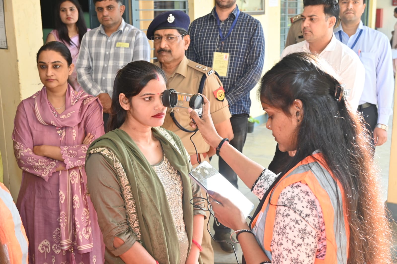 बुलंदशहर। ।भारत पुष्प। उत्तर प्रदेश पुलिस भर्ती एवं प्रोन्नति बोर्ड, लखनऊ के द्वारा आयोजित उपनिरीक्षक नागरिक पुलिस एवं समकक्ष पदों पर सीधी भर्ती 2025 की लिखित परीक्षा दिनांक 14 मार्च एवं 15 मार्च को आयोजित की जा रही है। जिलाधिकारी श्रुति एवं एसएसपी दिनेश कुमार सिंह ने प्रातः 08 बजे आर्य कन्या इंटर कॉलेज तथा एफबीएम कन्या इंटर कॉलेज बुलंदशहर का निरीक्षण करते हुए प्रथम पाली की परीक्षा हेतु की गई व्यवस्थाओं का जायजा लिया। दोनों परीक्षा केंद्रों पर निर्धारित समय 08 बजे से अभ्यर्थियों के प्रवेश के लिए जांच संबंधित प्रक्रिया को करते हुए अभ्यर्थी को प्रवेश दिया जा रहा है। जिलाधिकारी एवं एसएसपी ने अभ्यर्थियों की की जा रही बॉयोमैट्रिक सहित अन्य जांच प्रक्रिया का अवलोकन किया। सीसीटीवी कंट्रोल रूम का भी निरीक्षण करते हुए निर्देशित किया गया कि कैमरो को क्रियाशील रखा जाए ओर मॉनिटरिंग भी की जाए। परीक्षा को शांतिपूर्वक, पारदर्शी रूप से सम्पन्न कराया जाए। परीक्षा केंद्रों पर शांति व्यवस्था बनाए रखने के लिए पर्याप्त पुलिस बल की तैनाती की गई है। केंद्रों पर स्टैटिक मजिस्ट्रेट, केंद्र व्यवस्थापक उपस्थित रहे।