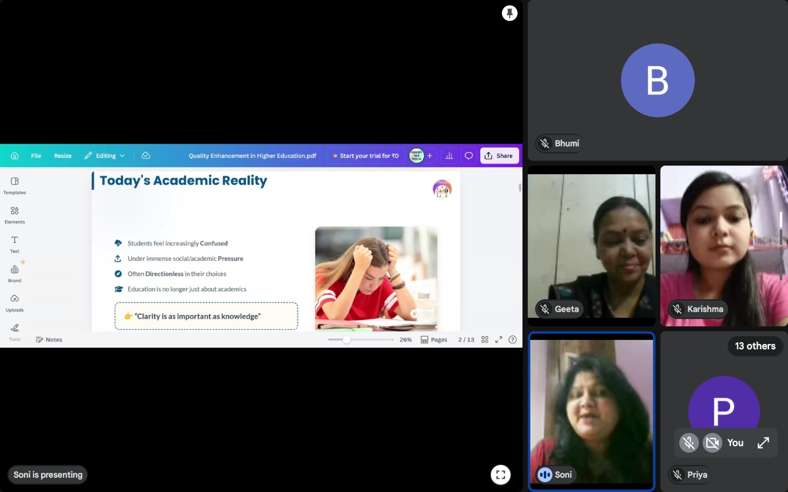 खुर्जा। ।भारत पुष्प। शुक्रवार को एकेपी डिग्री कॉलेज के मनोविज्ञान विभाग द्वारा डॉ गीता सिंह के योजन में एक विशिष्ट अतिथि व्याख्यान“गाइडेंस एंड काउंसलिंगएजअ टूल फॉर क्वालिटी एनहैंसमेंट इन हायर एजुकेशन”विषय पर ऑनलाइन आयोजित किया गया। मुख्य वक्ता सोनी जैन (साइकोलॉजिस्ट एंड काउंसलर) ने बताया कि वर्तमान समय में छात्र जीवन में उन्नति करने के लिए परामर्श और निर्देशन की महत्वपूर्ण भूमिका है। व्यवसाय के चयन, शैक्षिक विषयों के चयन, व्यक्तिगत और सामाजिक समस्याओं के निदान व समाधान, हेतु परामर्श व निर्देशन लेना अत्यंत आवश्यक है। इस अवसर पर महाविद्यालय की प्राचार्या प्रो. डिंपललिए ने बताया कि छात्राओं में कौशल क्षमता बढ़ाने व उनके सर्वांगीण विकास हेतु समय-समय पर महाविद्यालय द्वारा ऑफलाइन और ऑनलाइन व्याख्यान/सेमिनार/कार्यशालाएं आयोजित की जाती है। आज का व्याख्यान इस श्रृंखला की एक कड़ी है। कार्यक्रम संयोजिका डॉ. गीता सिंह ने बताया कि महाविद्यालय के मनोविज्ञान विभाग में तनाव प्रबंधन एवंनिर्देशन और परामर्श कौशल विकास पाठ्यक्रम चल रहे हैं। छात्राएं कैरियर काउंसलिंग को व्यवसाय के रूप में अपना सकतीं हैं। इस अवसर पर प्रो.रेखा चौधरी तथा छात्राएं उपस्थित रहीं।