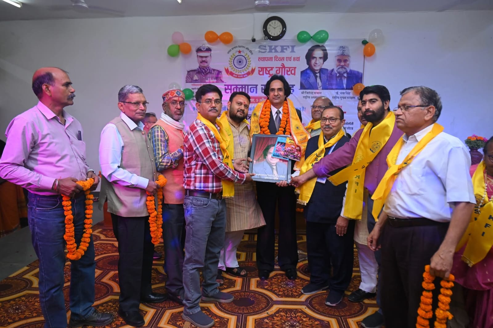 खुर्जा। ।भारत पुष्प। समाज सेवा के क्षेत्र में सक्रिय डीसी गुप्ता (कांटे वाले), खुर्जा को समाज कल्याण फेडरेशन ऑफ इंडिया (SKFI) के बुलंदशहर जिला अध्यक्ष मनोनीत किया गया। यह घोषणा संगठन के 8वें राष्ट्र गौरव सम्मान समारोह में की गई। इस अवसर पर डीसी गुप्ता ने कहा कि “जब प्रतिभाओं को सम्मान मिलता है, तो समाज को नई दिशा मिलती है। किसी एक व्यक्ति का सम्मान केवल उसी का नहीं, बल्कि पूरे समाज का उत्साहवर्धन होता है। जब श्री जितेंद्र बच्चन जी जैसे व्यक्तित्व आगे बढ़ते हैं, तो वे अनेक लोगों को प्रेरित करते हैं और समाज में नई चेतना का संचार करते हैं।” उन्होंने कहा कि इसी भावना के साथ समाज कल्याण फेडरेशन ऑफ इंडिया निरंतर समाज हित में कार्य कर रहा है। फेडरेशन के स्थापना दिवस पर आयोजित इस भव्य समारोह में देश के 9 राज्यों की 51 प्रतिभाओं को उनके उत्कृष्ट कार्यों के लिए सम्मानित किया गया। इनमें राम दिवाकर डीसी गुप्ता (कांटे वाले) प्रमोद भारद्वाज ‘गुरुजी’ राष्ट्रीय कवि जय किशन सोनपाल सिंह चौहान — राष्ट्र गौरव सम्मान एडवोकेट ममता अग्रवाल — बुलंदशहर गौरव सम्मान हरीश गुप्ता अंबे — समाज भूषण सम्मान राजेंद्र भारद्वाज एवं महाराणा प्रताप सिंह — पत्रकार गौरव सम्मान समारोह के मुख्य अतिथि राष्ट्रपति वीरता पुरस्कार से सम्मानित डॉ. राजीव नारायण मिश्रा, आईपीएस (उत्तर प्रदेश पुलिस) रहे। कार्यक्रम की अध्यक्षता प्रो. बी.एस. राजपूत, पूर्व कुलपति, कुमाऊं-गढ़वाल विश्वविद्यालय ने की। कार्यक्रम में प्रो. (डॉ.) भरत सिंह (मुख्य संरक्षक, एसकेएफआई) तथा राष्ट्रीय अध्यक्ष एवं वरिष्ठ पत्रकार जितेंद्र बच्चन की विशेष उपस्थिति रही। इस अवसर पर मिथिलेश सिंह, जागेश सिंह, प्रो. बबलू रावत एवं प्रो. आर.के. शाक्य का विशेष सहयोग उल्लेखनीय रहा।