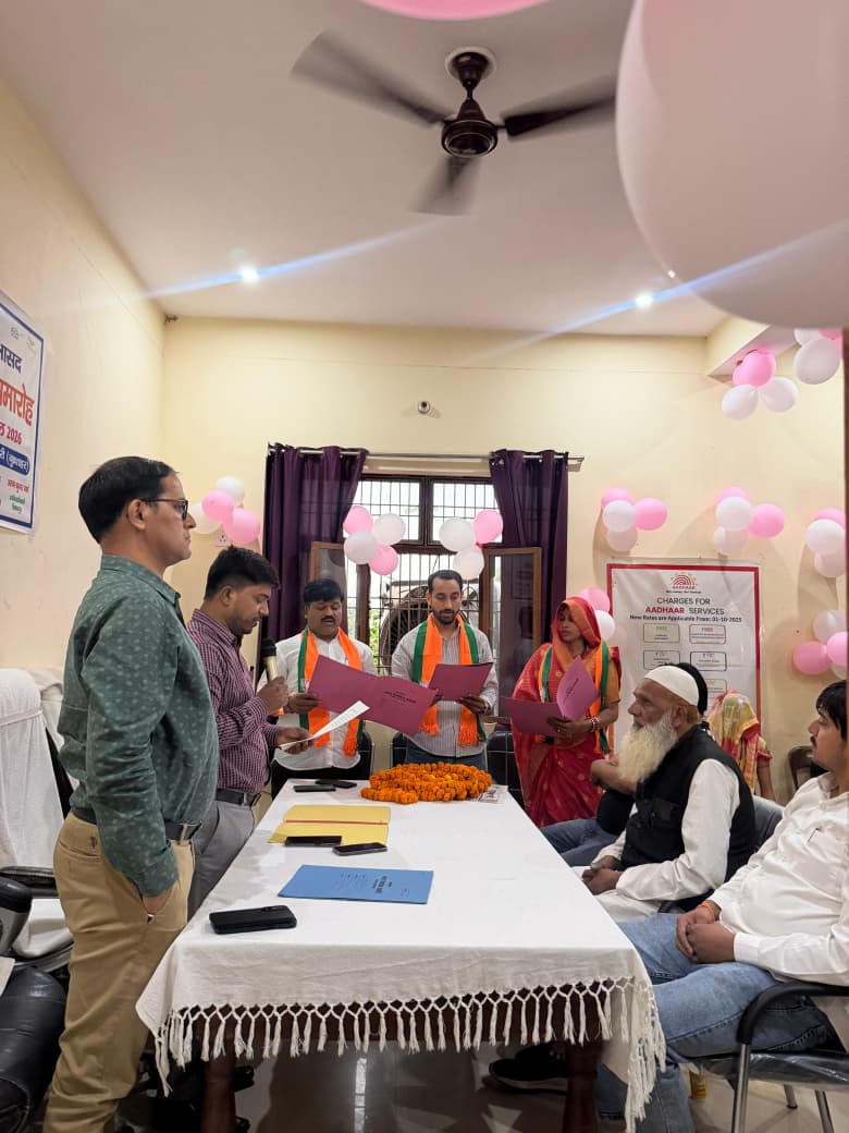 छतारी : ।भारत पुष्प। नगर पंचायत सभागार में गुरुवार की शाम भाजपा के नवनिर्वाचित सभासदों को शिकारपुर एसडीएम अरुण कुमार वर्मा, अधिशासी अधिकारी अरविंद मिश्रा ने गोपनीयता की शपथ दिलाई गई। जहां भाजपा कार्यकर्ताओं ने शपथ लेने की खुशी में पुष्पमाला पहनाकर कर स्वागत किया। छतारी नगर पंचायत सभागार में गुरुवार की शाम भाजपा के नवनिर्वाचित सभासदों के लिए शपथ ग्रहण समारोह का आयोजन किया गया। आयोजित कार्यक्रम में भाजपा के नामित सभासदों दुर्गेश अग्रवाल, सचिन शर्मा एवं राखी कुशवाह को शिकारपुर उपजिलाधिकारी अरुण कुमार वर्मा एवं अधिशासी अधिकारी अरविंद मिश्रा ने संयुक्त रूप से नव-नामित सभासदों को पद एवं गोपनीयता की शपथ दिलाई। इस दौरान अधिकारियों ने सभी को अपने दायित्वों का ईमानदारी एवं निष्ठा के साथ निर्वहन करने की अपील की। इस मौके पर हरपाल सिंह सूर्यवंशी, राजेंद्र सिंह, गौरव वार्ष्णेय, मनोज कुमार, मनीष यादव, दीपक यादव, उमाशंकर कुशवाहा, रुशांत शर्मा, मोहित, हर्ष वार्ष्णेय, मोहित बाबा, गोविंद शर्मा आदि मौजूद रहे।