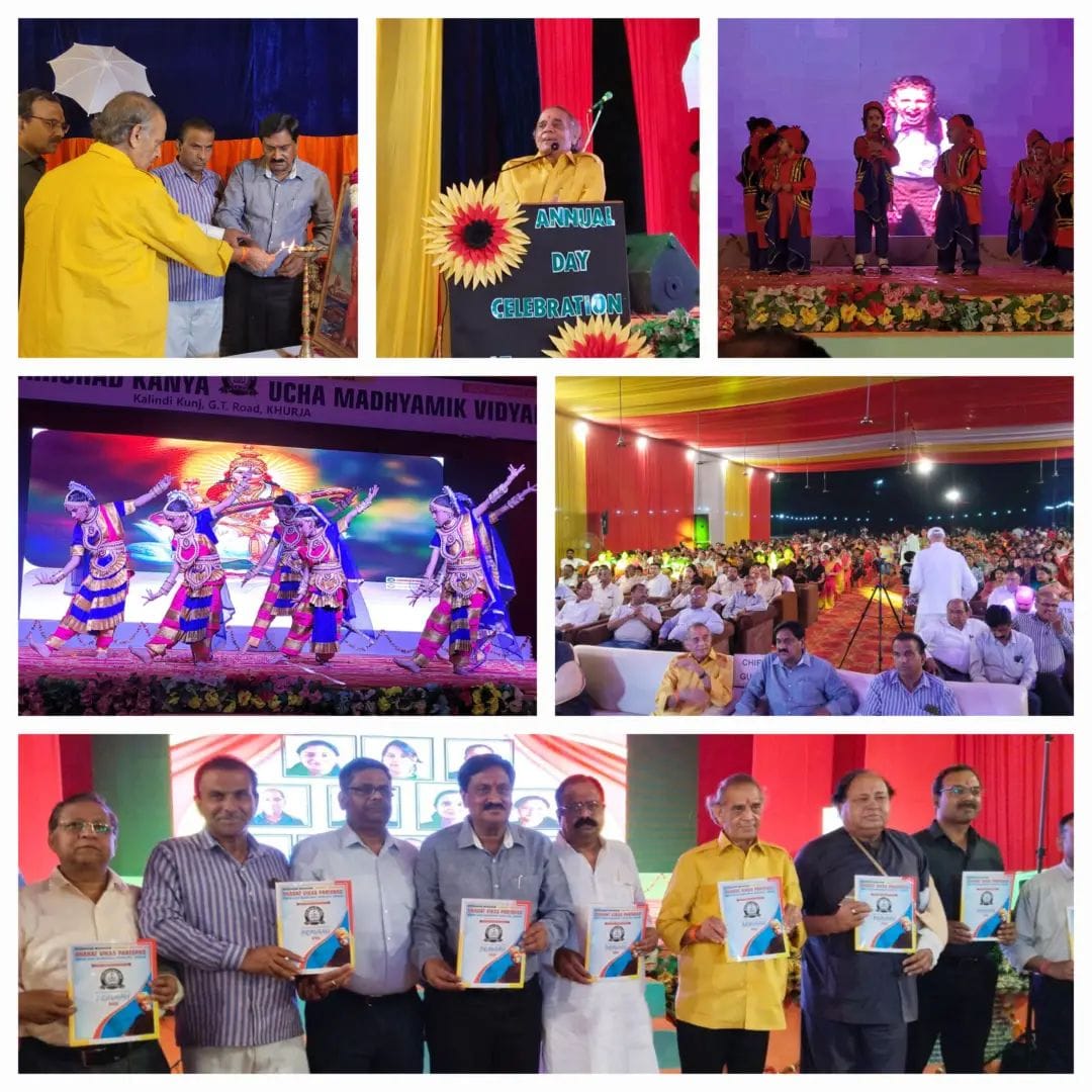 खुर्जा। ।भारत पुष्प। भारत विकास परिषद कन्या उच्च माध्यमिक का वार्षिक उत्सव एक नए उत्साह और एक नई जोश के साथ (रंगोत्सव) का आयोजन बहुत ही धूमधाम के साथ मनाया गया कार्यक्रम का शुभारम्भ मंच पर आए मुख्य अतिथि राष्ट्रीय कवि हरिओम पवार तथा भारत के विश्व प्रसिद्ध उद्योगपति एसपी दादू तथा विद्यालय के संरक्षक शिवकुमार गोड तथा अध्यक्ष राहुल राठी तथा विद्यालय के प्रबंधक सुनील गुप्ता आदर्श कोषाध्यक्ष महेश पोद्दार द्वारा मां सरस्वती जी की छायाचित्र पर दीप प्रज्वलित करके कार्यक्रम का शुभारंभ किया गया कार्यक्रम का मंच संचालन विद्यालय की छात्रा एंजेल तथा माही द्वारा किया गया कार्यक्रम में सांस्कृतिक प्रोग्राम नाटक हास्य नाटक तथा अनेकों प्रकार के कार्यक्रम का आयोजन किया कार्यक्रम में बाहर से आए सभी अतिथि गणों ने कार्यक्रम की भूरि भूरि प्रशंसा की कार्यक्रम की विद्यालय की छात्राओं द्वारा मंच पर इंद्रधनुष की भांति अपनी कला के प्रकाश को पूरे भारत विकास परिषद विद्यालय में फैलाया तथा अपने कार्यक्रम के द्वारा एक संदेश आज के छात्रों को देने का प्रयास किया इस मौके पर मुख्य अतिथि राष्ट्रीय कवि हरिओम पवार जी द्वारा मंच पर अपनी कविताओं के माध्यम से कार्यक्रम में चांद लगा दिए इस मौके पर विद्यालय संरक्षक शिवकुमार गौड़ तथा विद्यालय अध्यक्ष राहुल राठी ने विद्यालय को अपने चरम पर पहुंचने का संकल्प लिया इस मौके पर प्रेम प्रकाश प्रेमनाथ आहूजा लौकी जिंदल डॉक्टर अनिल गुप्ता राकेश सिंघल तथा भारत विकास परिषद के पदाधिकारी तथा विद्यालय परिवार उपस्थित रहा।