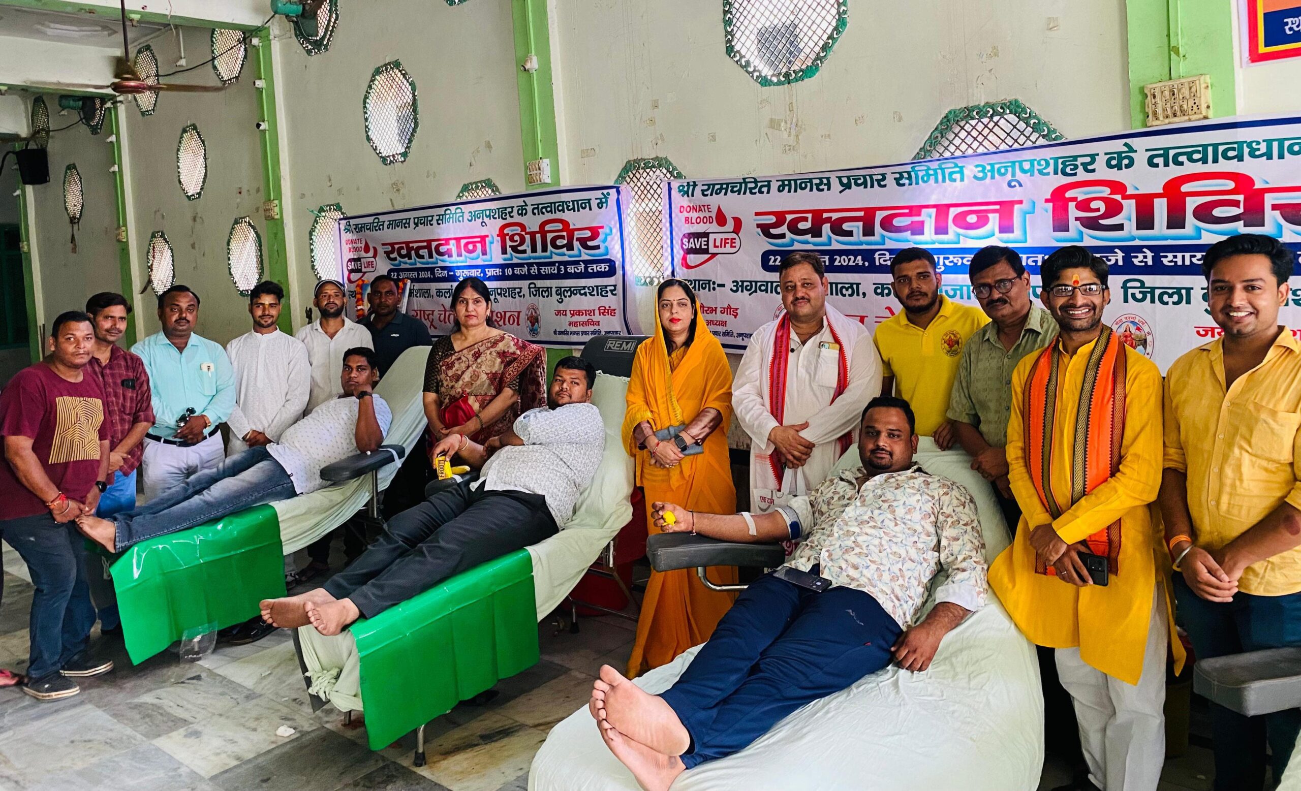 अनूपशहर। ।भारत पुष्प। राष्ट्र चेतना मिशन एवं श्री रामचरित मानस प्रचार समिति के संयुक्त तत्वावधान में बुलंदशहर चैरिटेबल ब्लड सेन्टर के सहयोग से अनूपशहर में 8वीं बार आयोजित रक्तदान शिविर…