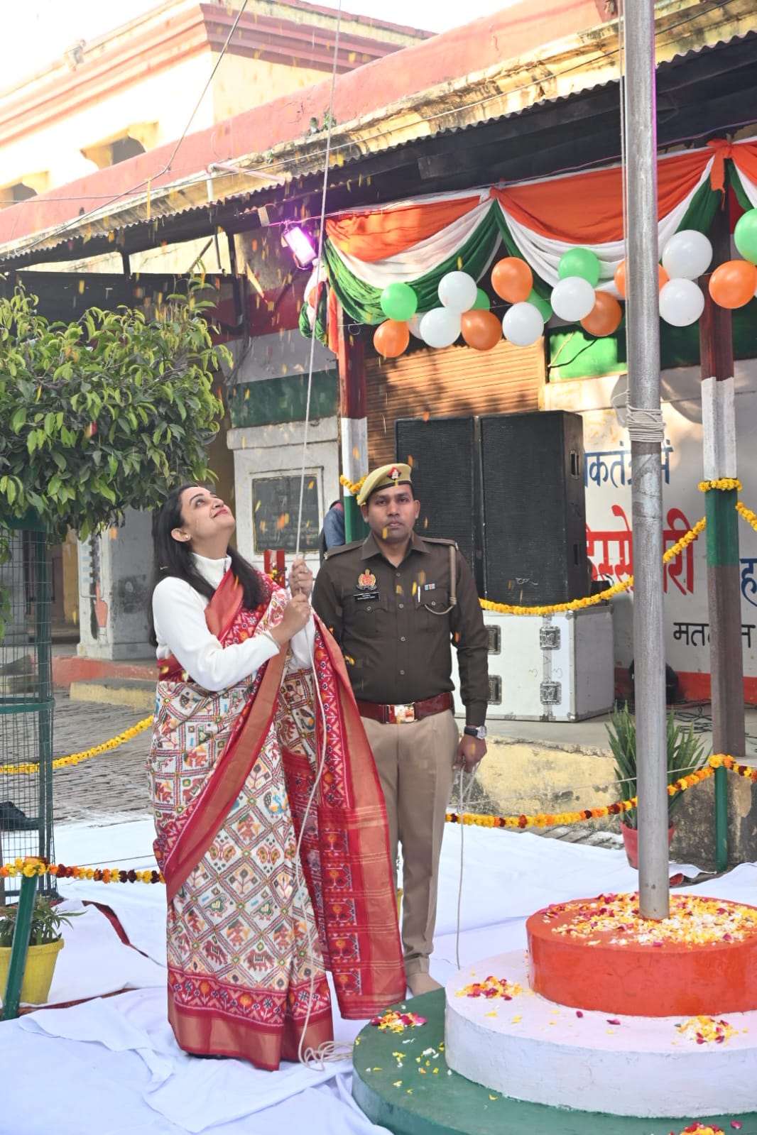 बुलन्दशहर। ।भारत पुष्प। गणतन्त्र दिवस के अवसर पर कलेक्ट्रेट परिसर में जिलाधिकारी श्रुति द्वारा ध्वजारोहण कर राष्ट्रगान गाया गया। साथ ही जिलाधिकारी द्वारा उपस्थित कलेक्ट्रेट परिसर में सभी को प्रतिज्ञा…