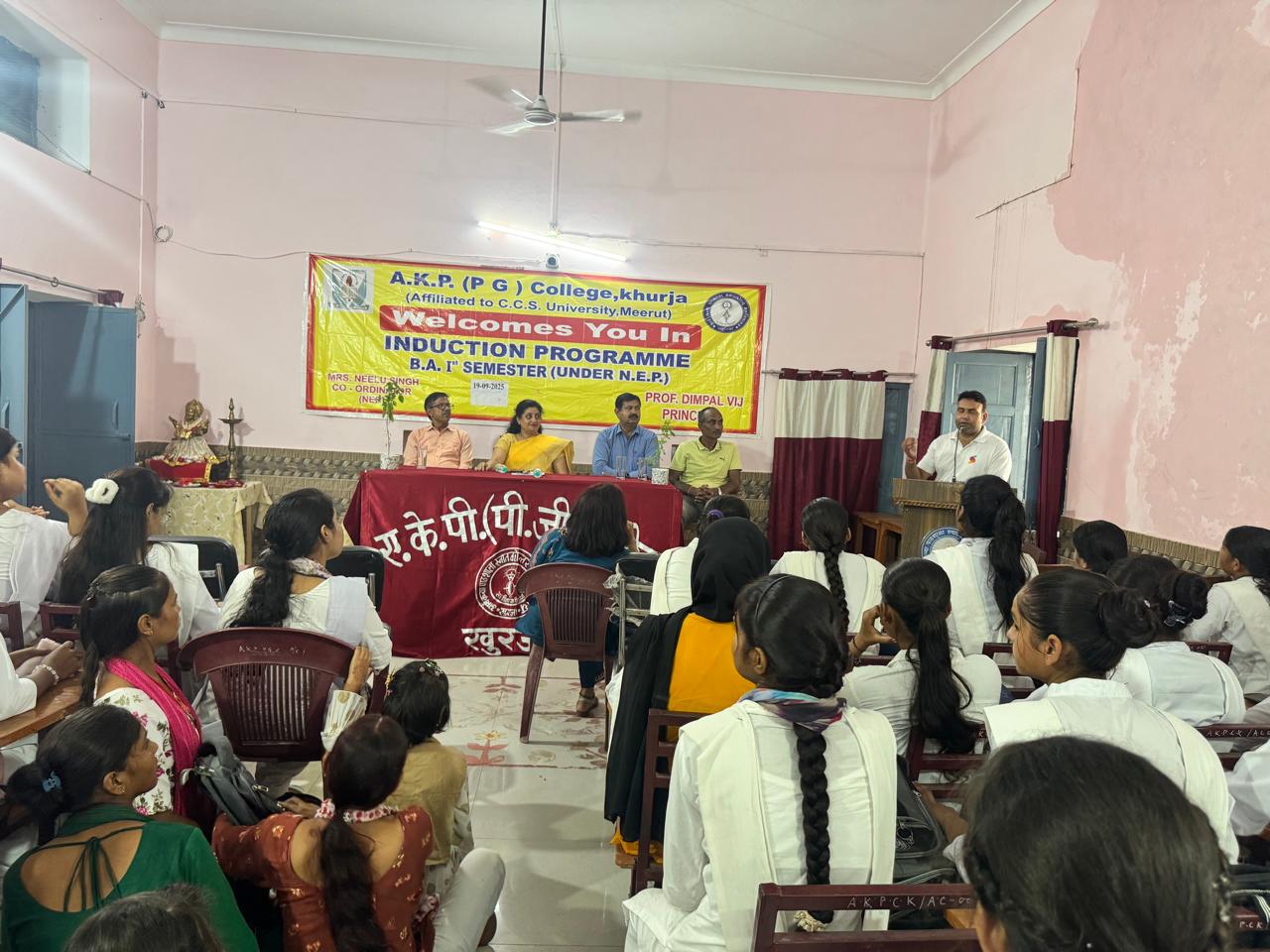खुर्जा। ।भारत पुष्प। एकेपी डिग्री कॉलेज में नई शिक्षा नीति के तहत नव प्रवेशित बीए प्रथम सेमेस्टर व एमए प्रथम सेमेस्टर की समस्त छात्राओं का अभिविन्यास कार्यक्रम “विद्यारंभ” आयोजित किया…