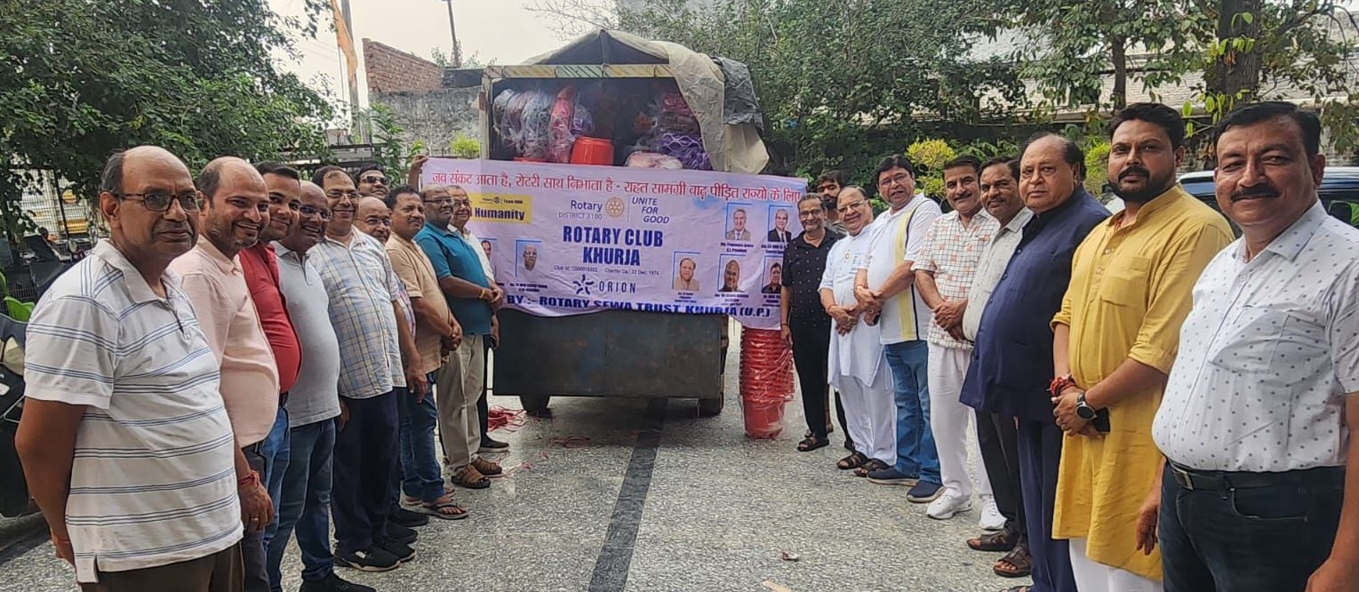 खुर्जा: ।भारत पुष्प। रोटरी क्लब खुर्जा के बैनर तले बाढ़ पीड़ितों को एक ट्रक भरकर रोटरी रिलीफ़ रिसोर्स सेंटर, जालंधर (जिला 3070) को राहत सामग्री भेजी गयी। रोटरी क्लब खुर्जा…