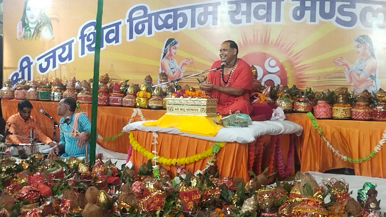 कथा व्यास द्वारा कराया गया भगवान श्री कृष्ण की बाल लीलाओं की कथाओं का श्रवण