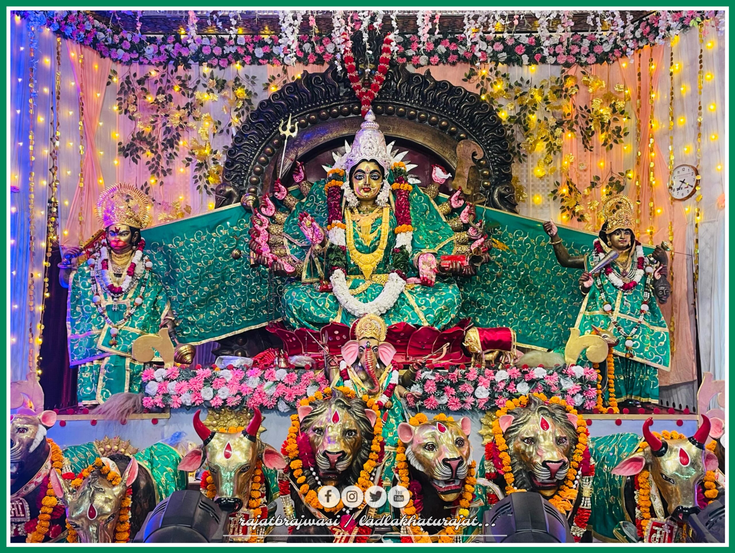 खुर्जा। ।भारत पुष्प। नगर के प्रसिद्ध श्री नवदुर्गा शक्ति मंदिर पर चल रहे श्री चैत्र मास नवरात्रि महोत्सव में गुरुवार को मातारानी को हरे रंग की पोषाक धारण कराकर मां…