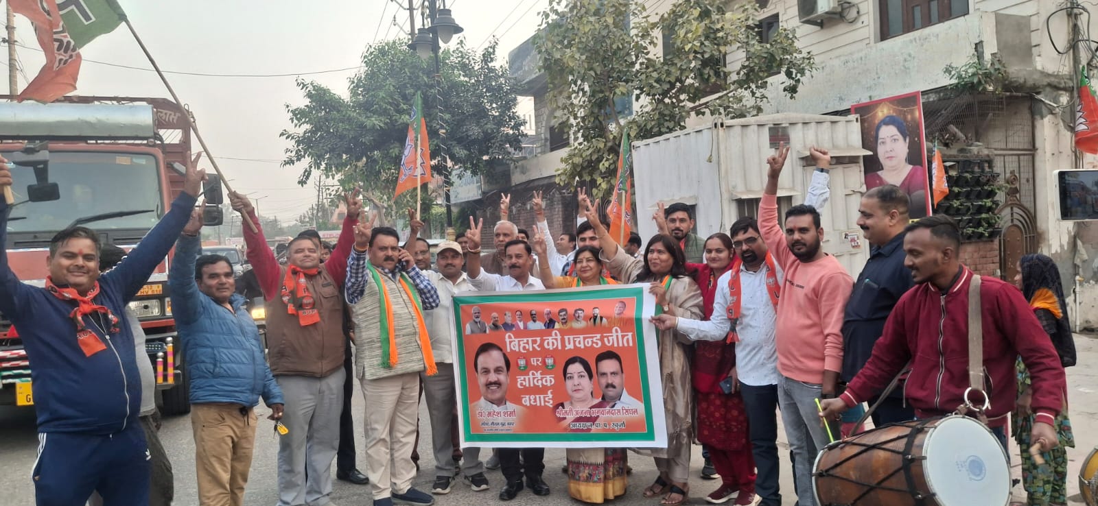 बिहार में बीजेपी की जीत की खुशी में भाजपाईयों ने मनाया जश्न